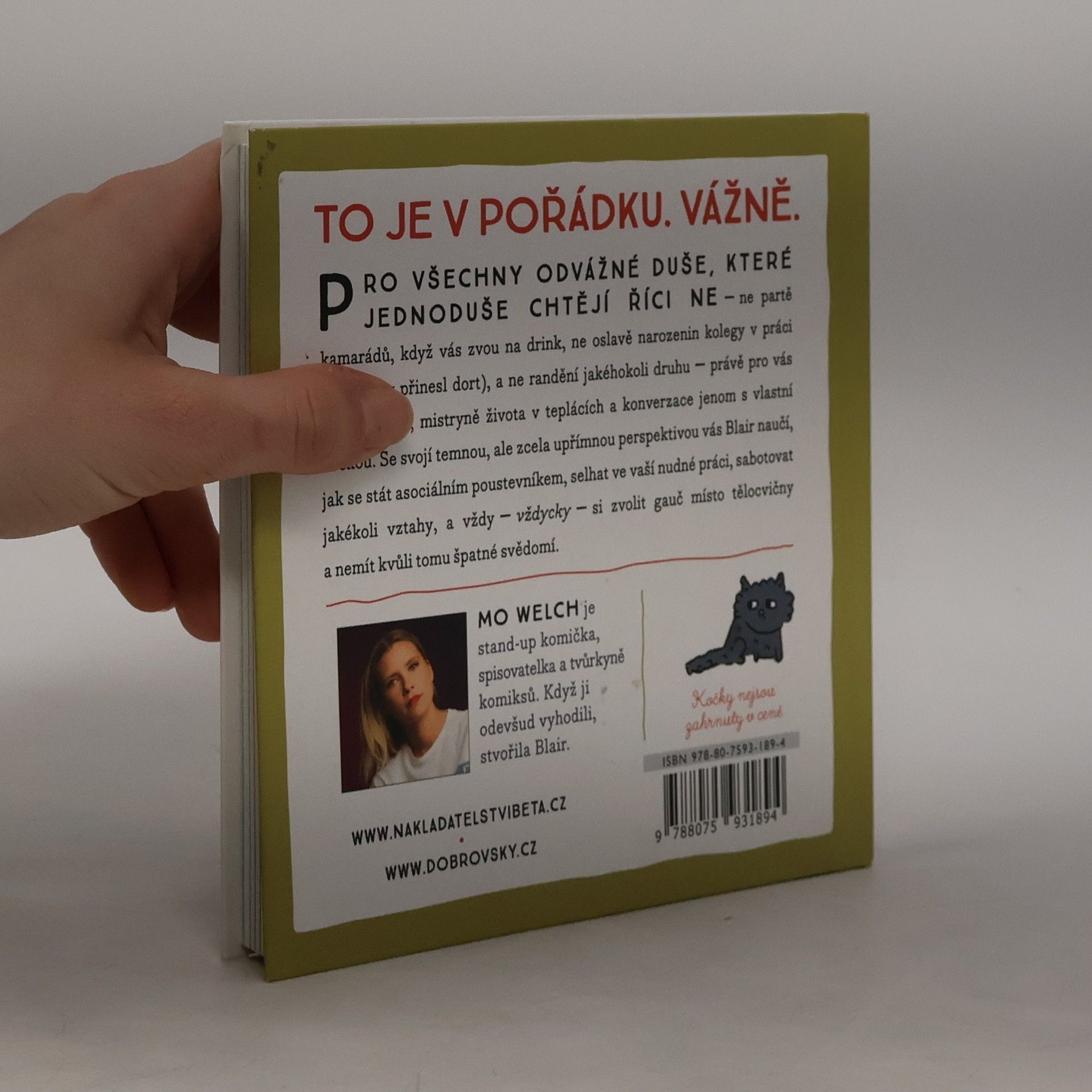 Jednoduchý, snadno pochopitelný a blbuvzdorný rádce, jak (ne)pomoci sám sobě. Pro všechny odvážné duše, které jednoduše chtějí říci NE – ne partě kamarádů, když vás zvou na drink, ne oslavě narozenin kolegy v práci (ledaže by přinesl dort), a ne randění jakéhokoli druhu – právě pro vás je tady Blair, mistryně života v teplácích a konverzace jenom s vlastní kočkou. Se svojí temnou, ale zcela upřímnou perspektivou vás Blair naučí, jak se stát asociálním poustevníkem, selhat ve vaší nudné práci, sabotovat jakékoli vztahy, a vždy – vždycky – si zvolit gauč místo tělocvičny a nemít kvůli tomu špatné svědomí.