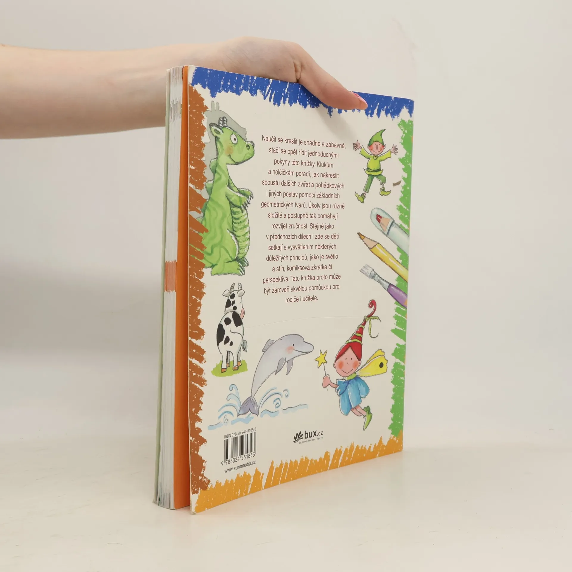 Naučit se kreslit je snadné a zábavné, stačí se opět řídit jednoduchými pokyny této knížky. Klukům a holčičikám poradí, jak nakrestlit spoustu dalších zvířat a pohádkových i jiných postav pomocí základních geometrických tvarů. Úkoly jsou různě složité a postupně tak pomáhají rozvíjet zručnost. Stejně jako v předchozích dílech i zde se děti setkají s vysvětlením některých důležitých principů, jako je světlo a stín, komksová zkratka či perspektiva. Tato knížka proto může být zároveň skvělou pomůckou pro rodiče i učitele.