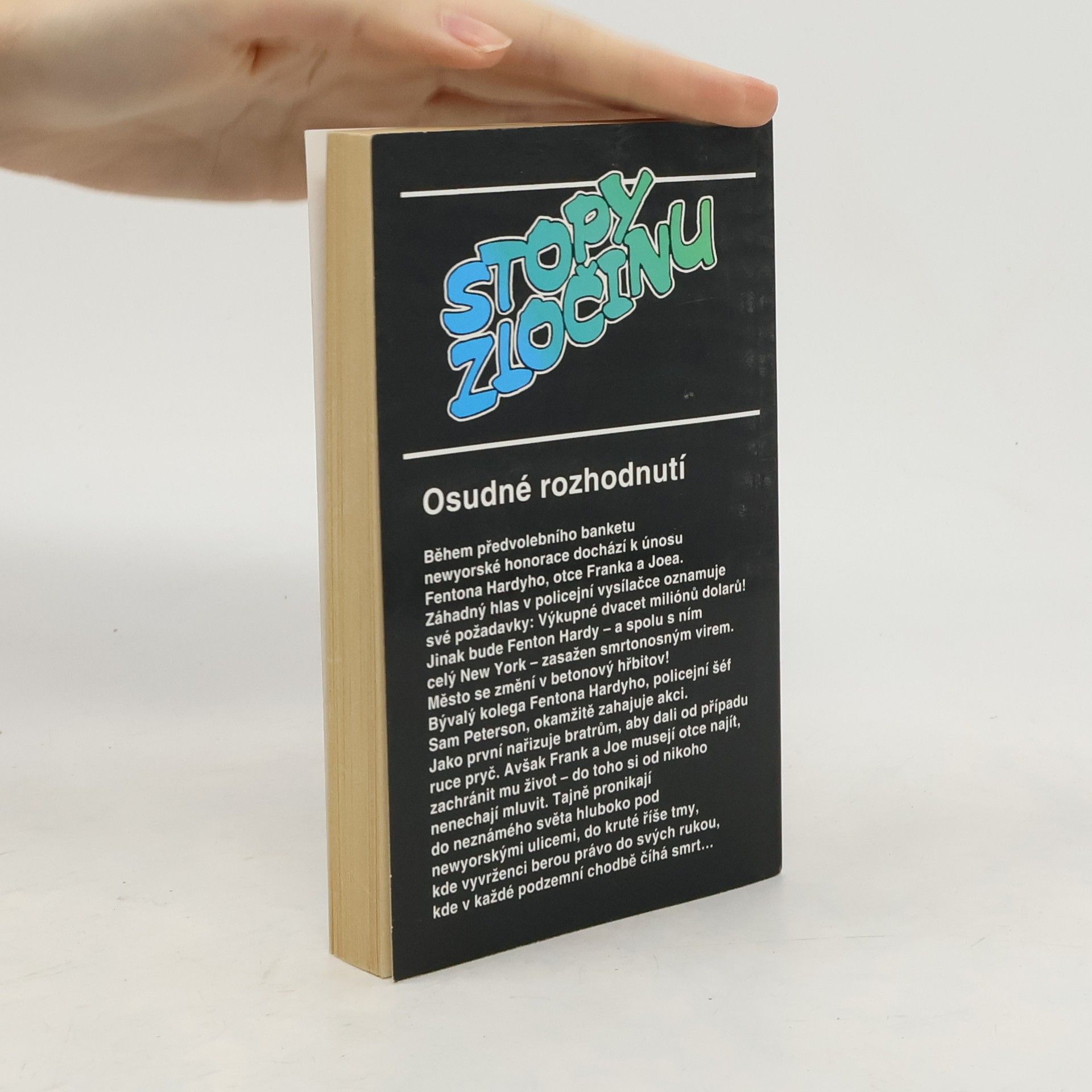 Osudné rozhodnutí Během předvolebního banketu newyorské honorace dochází k únosu Fentona Hardyho, otce Franka a Joea. Záhadný hlas v policejní vysílačce oznamuje své požadavky: Výkupné dvacet miliónů dolarů! Jinak bude Fenton Hardy - a spolu s ním celý New York - zasažen smrtonostným virem. Město se změní v betonový hřbitov! Bývalý kolega Fentona Hardyho, policejní šéf Sam Peterson, okamžitě zahajuje akci. jako první nařizuje bratrům, aby dali od případu ruce pryč. Avšak Frank a Joe musejí otce najít, zachránit mu život - do toho si od nikoho nenechají mluvit. Tajně pronikají do neznámého světa hluboko pod newyorskými ulicemi, do kruté říše tmy, kde vyvrženci berou právo do svých rukou, kde v každé podzemní chodbě číhá smrt ...