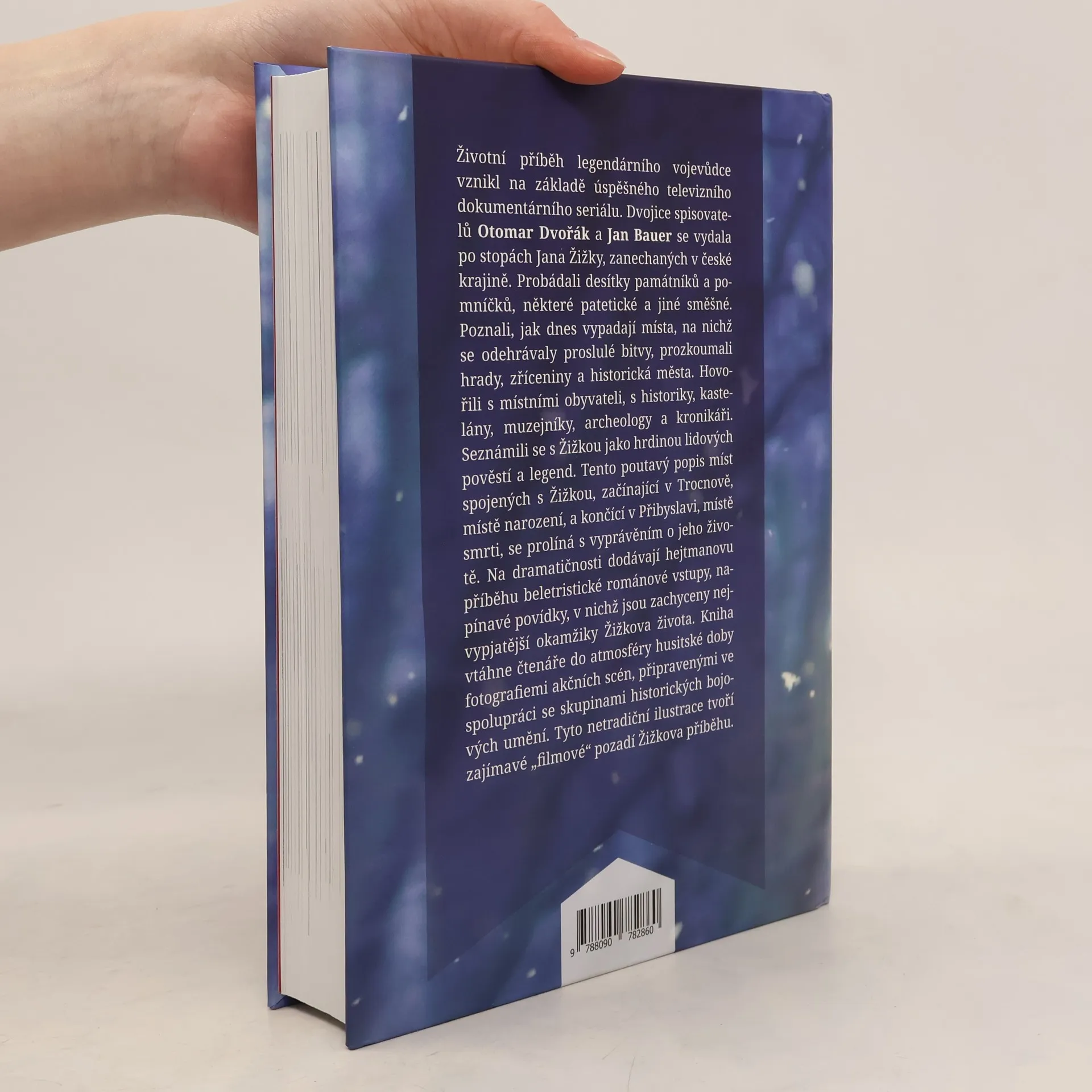 Světla a stíny Hejtmanovy životní cesty. Životní příběh legendárního vojevůdce vznikl na základě úspěšného televizního dokumentárního seriálu. Dvojice spisovatelů Otomar Dvořák a Jan Bauer se vydala po stopách Jana Žižky, zanechaných v české krajině. Probádali desítky památníků a pomníčků, některé patetické a jiné směšné. Poznali, jak dnes vypadají místa, na nichž se odehrávaly proslulé bitvy, prozkoumali hrady, zříceniny a historická města. Hovořili s místními obyvateli, s historiky, kastelány, muzejníky, archeology a kronikáři. Seznámili se s Žižkou jako hrdinou lidových pověstí a legend. Tento poutavý popis míst spojených s Žižkou, začínající v Trocnově, místě narození, a končící v Přibyslavi, místě smrti, se prolíná s vyprávěním o jeho životě. Na dramatičnosti dodávají hejtmanovu příběhu beletristické románové vstupy, napínavé povídky, v nichž jsou zachyceny nejvypjatější okamžiky Žižkova života. Kniha vtáhne čtenáře do atmosféry husitské doby fotografiemi akčních scén, připravenými ve spolupráci se skupinami historických bojových umění. Tyto netradiční ilustrace tvoří zajímavé „filmové“ pozadí Žižkova příběhu.