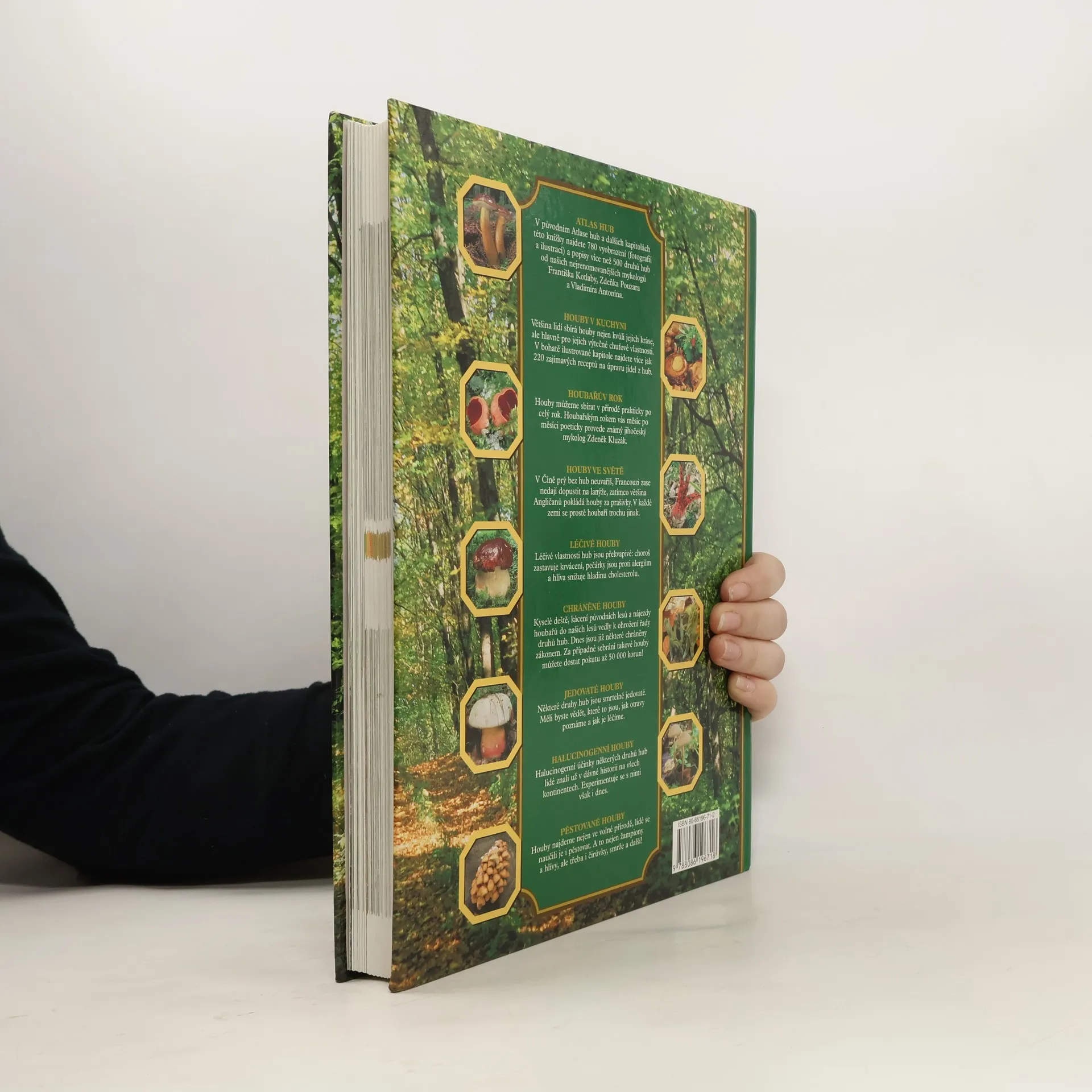 Popisy hub v této encyklopedii napsali naši přední mykologové. Najdete zde rovněž recepty na pokrmy z hub a houbařův kalendář, tedy doporučení jaké houby v daném ročním období sbírat. Vhodným doplňkem této knihy je přiložený Kapesní atlas hub, v němž naleznete vyobrazení a popisy nejznámějších druhů a jejich jedlých či jedovatých dvojníků, takže již přímo v lese budete moci houby snadno určit. schovat popis