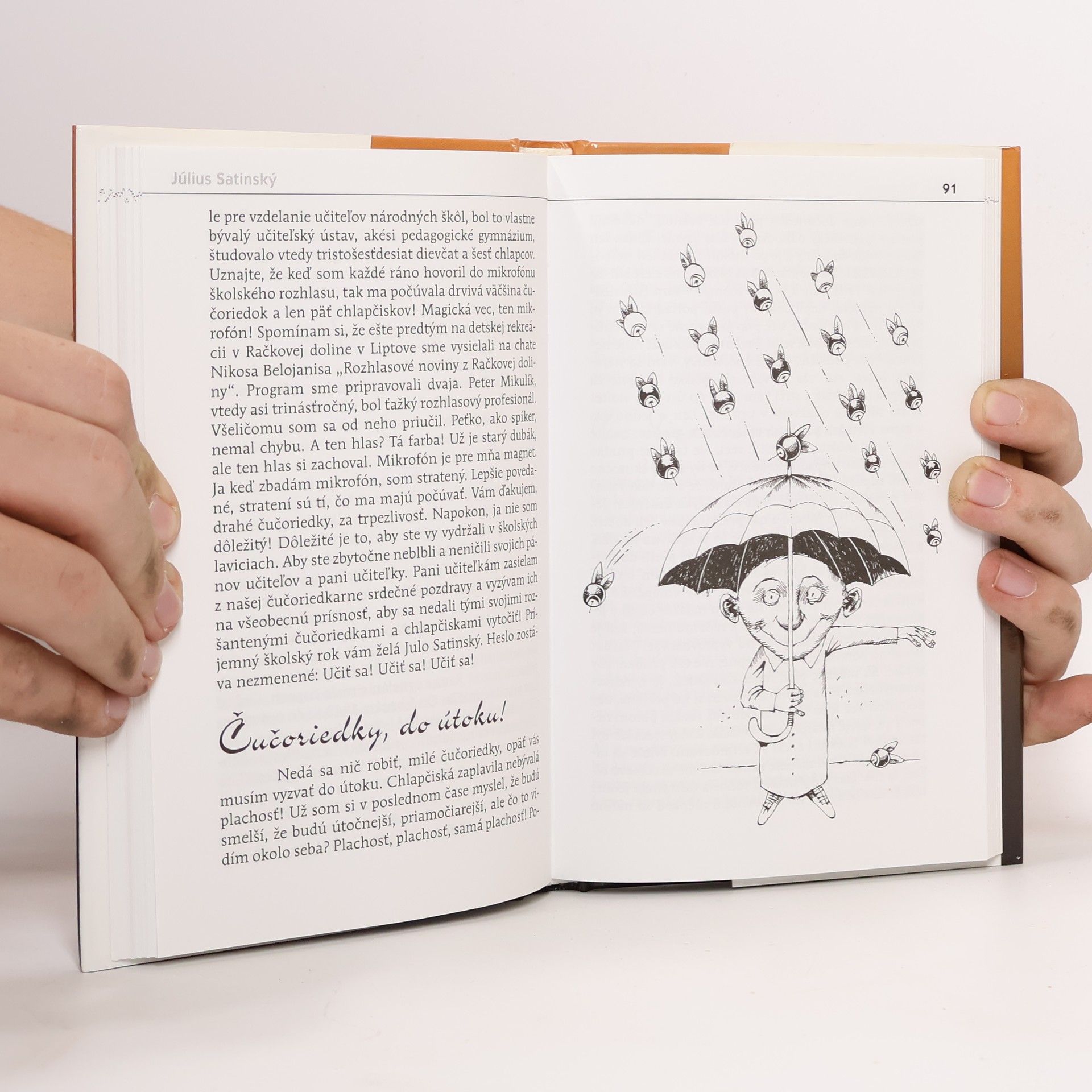 "Nedá sa nič robiť, milé čučoriedky, opäť vás musím vyzvať do útoku. Chlapčiská zaplavila nebývalá plachosť! Už som si v poslednom čase myslel, že budú smelší, že budú útočnejší, priamočiarejší, ale čo to vidím okolo seba? Plachosť, plachosť, samá plachosť! Postávajú okolo čučoriedok pred ich bránou, naberajú pomaly, pomaličky odhodlanie. Čas plynie. Zrazu len dievča vojde do brány a je po útoku! Už ma neštvite chlapčiská! Za mojich čias sa okolo toho nerobili také caviky! Prišli sme k bráne, schmatol som čučoriedku do náručia, vlepil som jej pusu, poriadne som ju vystískal - a hotovo!..."