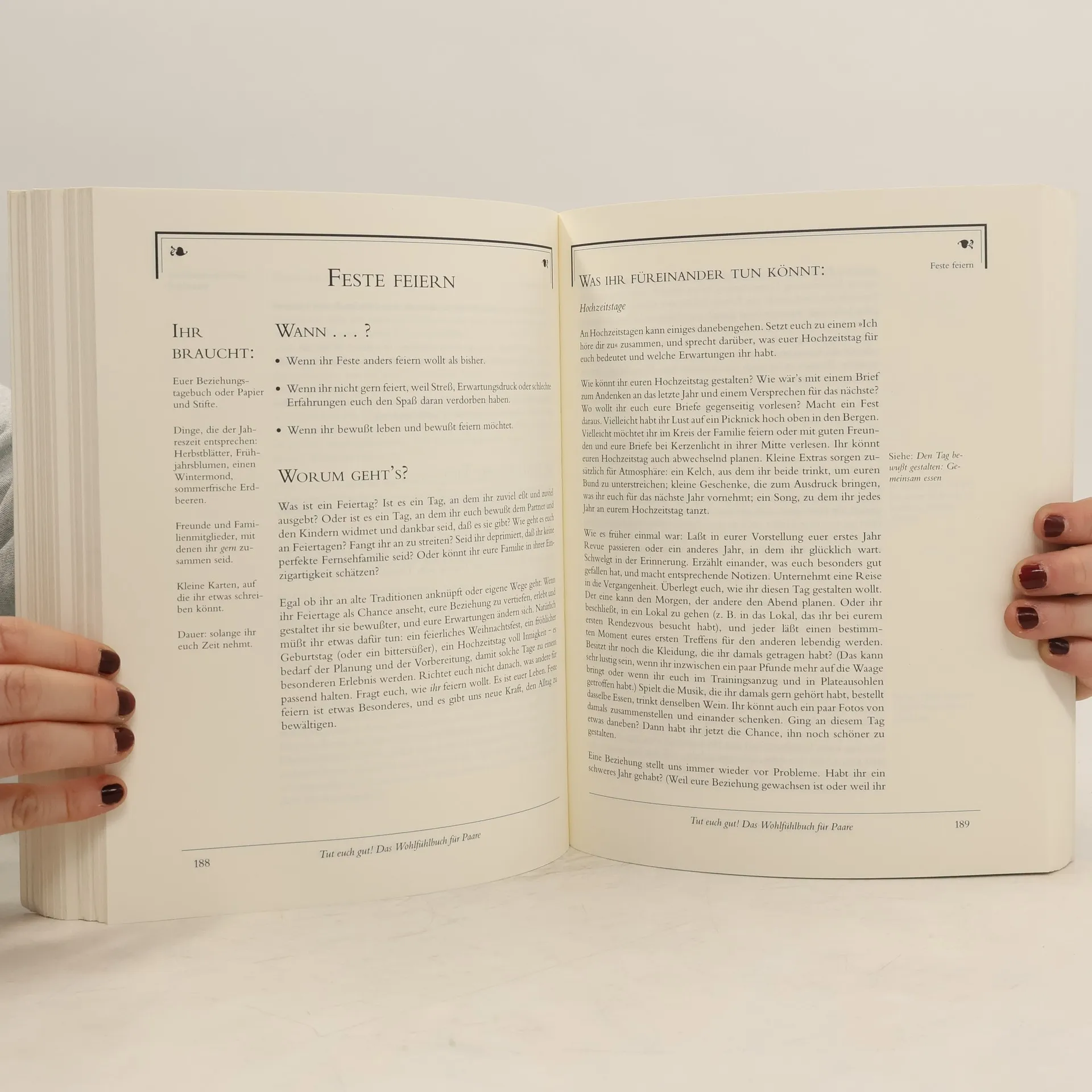 Der Alltag ist oft der ärgste Feind einer Liebesbeziehung. Aber das muss nicht so sein! Einfühlsam beschreibt Erfolgsautorin Jennifer Louden, was für ein liebevolles Leben zu zweit wichtig ist. In 53 Kapiteln dreht sich alles um Zärtlichkeit, Erotik, Zuwendung, gegenseitiges Zuhören und Verständnis füreinander, tausend kleinen Tipps und Anregungen, wie man das Leben zu zweit genießen und sich und dem Partner Gutes tun kann.