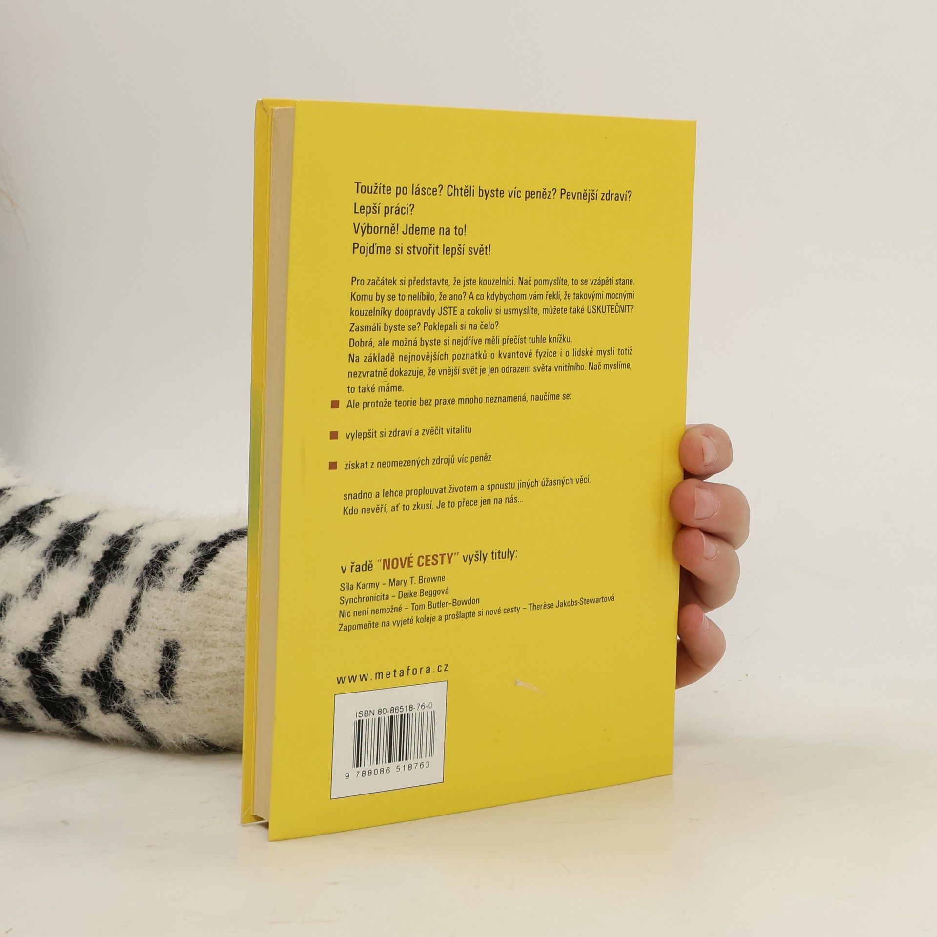 O tom, že ve své mysli skrýváme neuvěřitelnou, netušenou a nesmírně mocnou sílu, dnes už nepochybuje téměř nikdo. O podobných věcech běžně vycházejí tlusté knihy všemožných odborníků, ale jen málo takových, kterým by rozuměl úplně každý. A právě proto přichází se svou prací Barbara Bergerová. Její knížka se netváří ani dost málo vědecky, nepoučuje sáhodlouze a suchopárně, přestože z poznatků nejmodernější vědy vychází. Místo toho předkládá čtenáři rychlé a skutečně účinné techniky, které je doslova hračka ověřit v praxi. Snadno pochopitelné, jednoduché postupy pomohou v řešení zdravotních problémů, tíživé finanční situace nebo životních krizí. Přestože se to zdá neuvěřitelné, ovládneme-li sílu vlastní mysli, můžeme si stvořit doslova jiný - samozřejmě že lepší - život. Naučíme se odmítat to, co si nepřejeme, a naopak přivolávat do života to, co chceme. Jsme takoví, jaké jsou naše myšlenky, tvrdí autorka téhle knihy Barbara Bergerová. Svůj život můžeme změnit tím, že začneme myslet jinak. A protože se záležitostmi lidské psychiky a pozitivního myšlení zabývá poměrně dlouho a mnozí již na sobě účinky jejích postupů s úspěchem vyzkoušeli, nezbývá nám než připustit, že za pokus by to určitě stálo. ... celý text