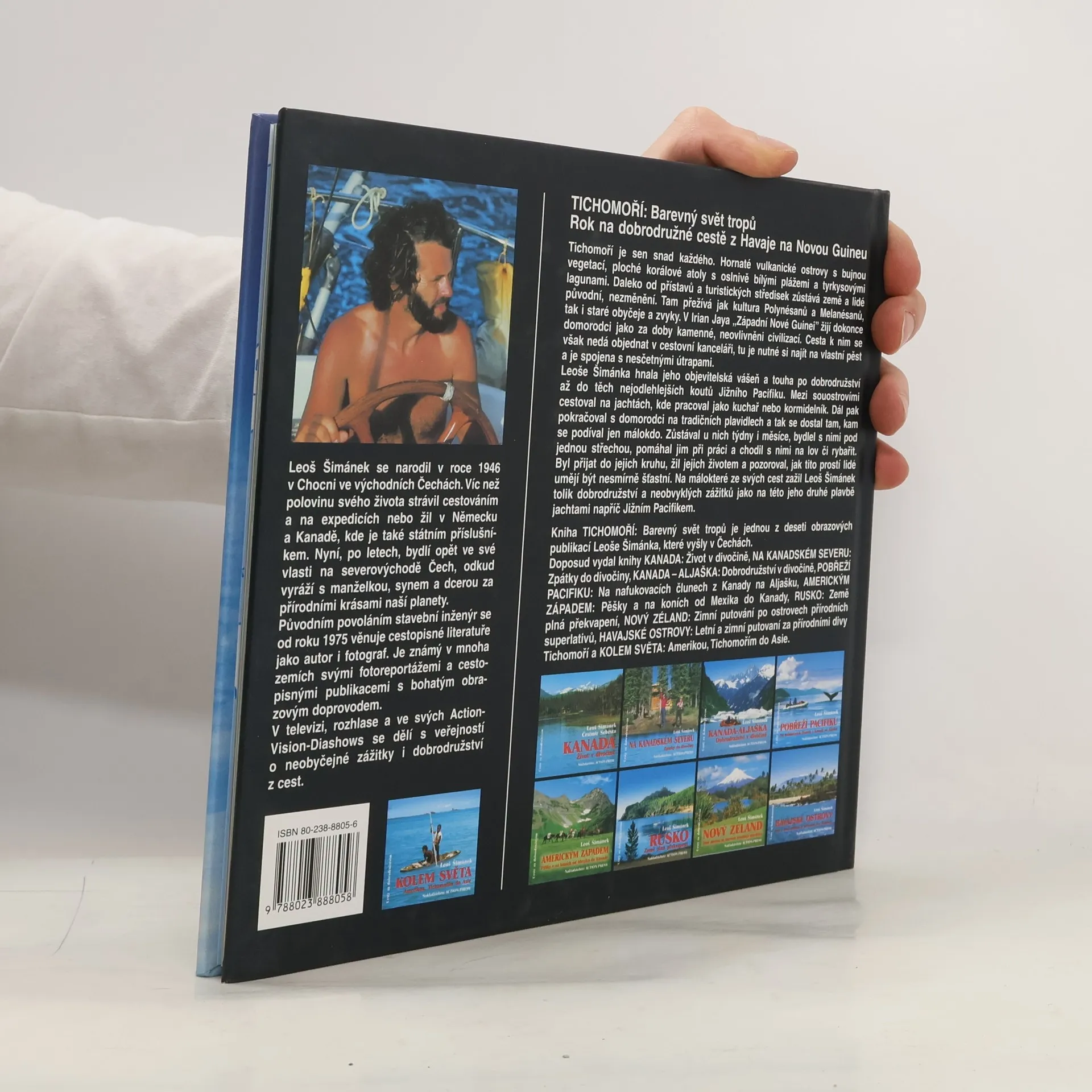 Podtitul: Barevný svět tropů. Tichomoří je sen snad každého. Hornaté vulkanické ostrovy s bujnou vegetací, ploché korálové atoly s oslnivě bílými plážemi a tyrkysovými lagunami. Daleko od přístavů a turistických středisek zůstává země a lidé původní, nezměnění. Tam přežívá jak kultura Polynésanů a Melanésanů, tak i staré obyčeje a zvyky. V Irian Jaya „Západní Nové Guineji” žijí dokonce domorodci jako za doby kamenné, neovlivněni civilizací. Cesta k nim se však nedá objednat v cestovní kanceláři, tu je nutné si najít na vlastní pěst a je spojena s nesčetnými útrapami. Leoše Šimánka hnala jeho objevitelská vášeň a touha po dobrodružství až do těch nejodlehlejších koutů jižního Pacifiku. Mezi souostrovími cestoval na jachtách, kde pracoval jako kuchař nebo kormidelník. Dál pak pokračoval s domorodci na tradičních plavidlech a tak se dostal tam, kam se podíval jen málokdo. Zůstával u nich týdny i měsíce, bydlel s nimi pod jednou střechou, pomáhal jim při práci a chodil s nimi na lov či rybařit. Byl přijat do jejich kruhu, žil jejich životem a pozoroval, jak tito lidi umějí být nesmírně šťastní. Na málokteré ze svých cest zažil Leoš Šimánek tolik dobrodružství a neobvyklých zážitků, jako na této jeho druhé plavbě jachtami napříč jižním Pacifikem.
