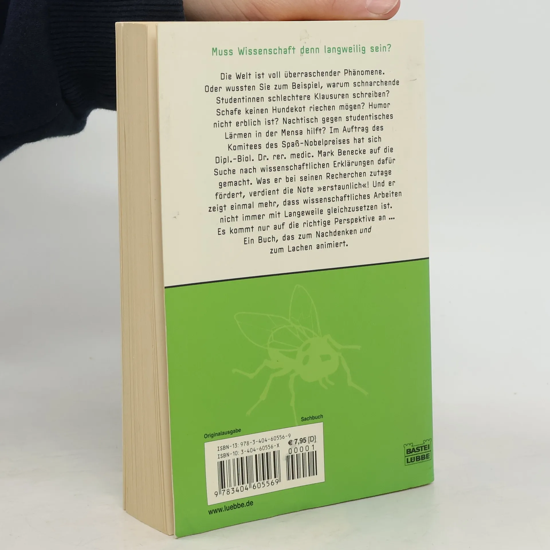 Muss Wissenschaft denn langweilig sein? Die Welt ist voll überraschender Phänomene. Oder wussten Sie zum Beispiel, warum schnarchende Studentinnen schlechtere Klausuren schreiben? Schafe keinen Hundekot riechen mögen? Humor nicht erblich ist? Nachtisch gegen studentisches Lärmen in der Mensa hilft? Im Auftrag des Komitees des Spaß-Nobel-Preises hat sich Dipl.-Biol. Dr. rer. medic. Mark Benecke auf die Suche nach wissenschaftlichen Erklärungen dafür gemacht. Was er bei seinen Recherchen zutage fördert, verdient die Note „erstaunlich“! Und er zeigt einmal mehr, dass wissenschaftliches Arbeiten nicht immer mit Langeweile gleichzusetzen ist. Es kommt nur auf die richtige Perspektive an... Ein Buch, das zum Nachdenken und zum Lachen animiert.