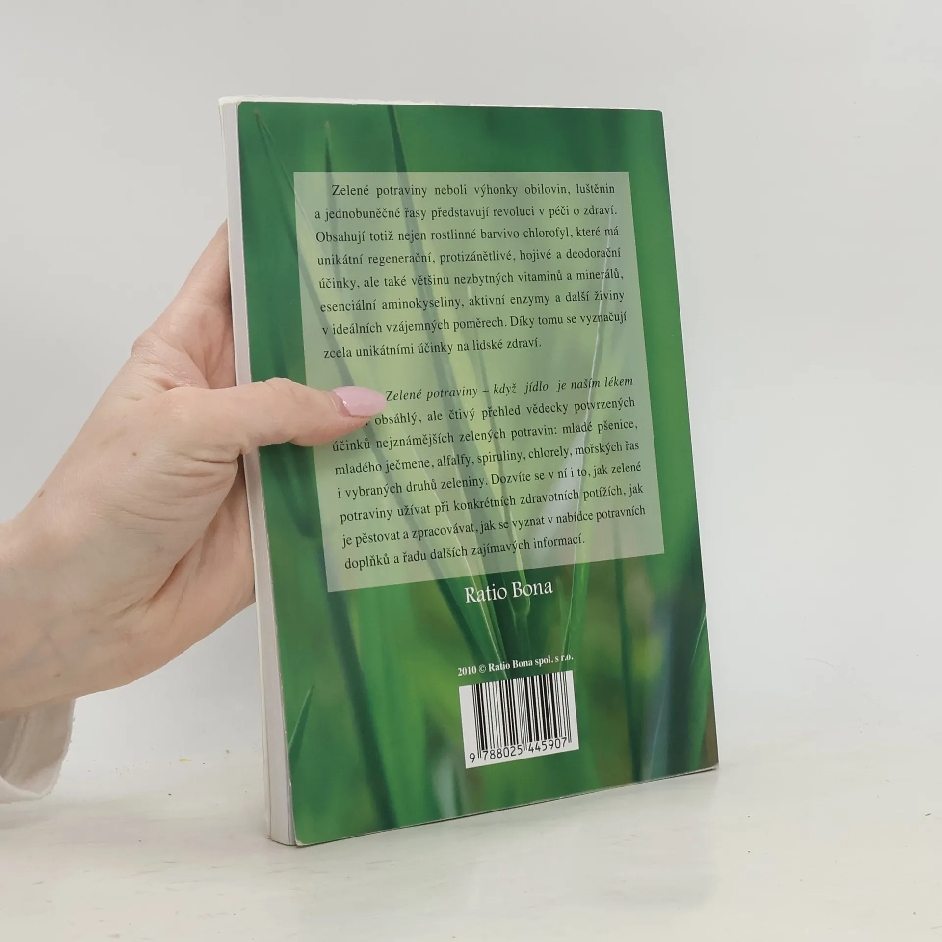 Zelené potraviny, neboli výhonky obilovin, luštěnin a jednobuněčné řasy představují revoluci v péči o zdraví. Obsahují totiž nejen rostlinné barvivo chlorofyl, které má unikátní regenerační, protizánětlivé, hojivé a deodorační účinky, ale také většinu nezbytných vitaminů a minerálů, esenciální aminokyseliny, aktivní enzymy a další živiny v ideálních vzájemných poměrech. Díky tomu se vyznačují zcela unikátními účinky na lidské zdraví. Kniha Zelené potraviny - Když jídlo je naším lékem přináší obsáhlý, ale čtivý přehled vědecky potvrzených účinků nejznámějších zelených potravin: mladého ječmene, mladé pšenice, alfalfy, chlorely, spiruliny, mořských řas i vybraných druhů zeleniny. Dozvíte se v ní i to, jak zelené potraviny užívat při konkrétních zdravotních potíží, jak je pěstovat a zpracovávat, jak se vyznat v nabídce potravních doplňků a řadu dalších zajímavých informací.