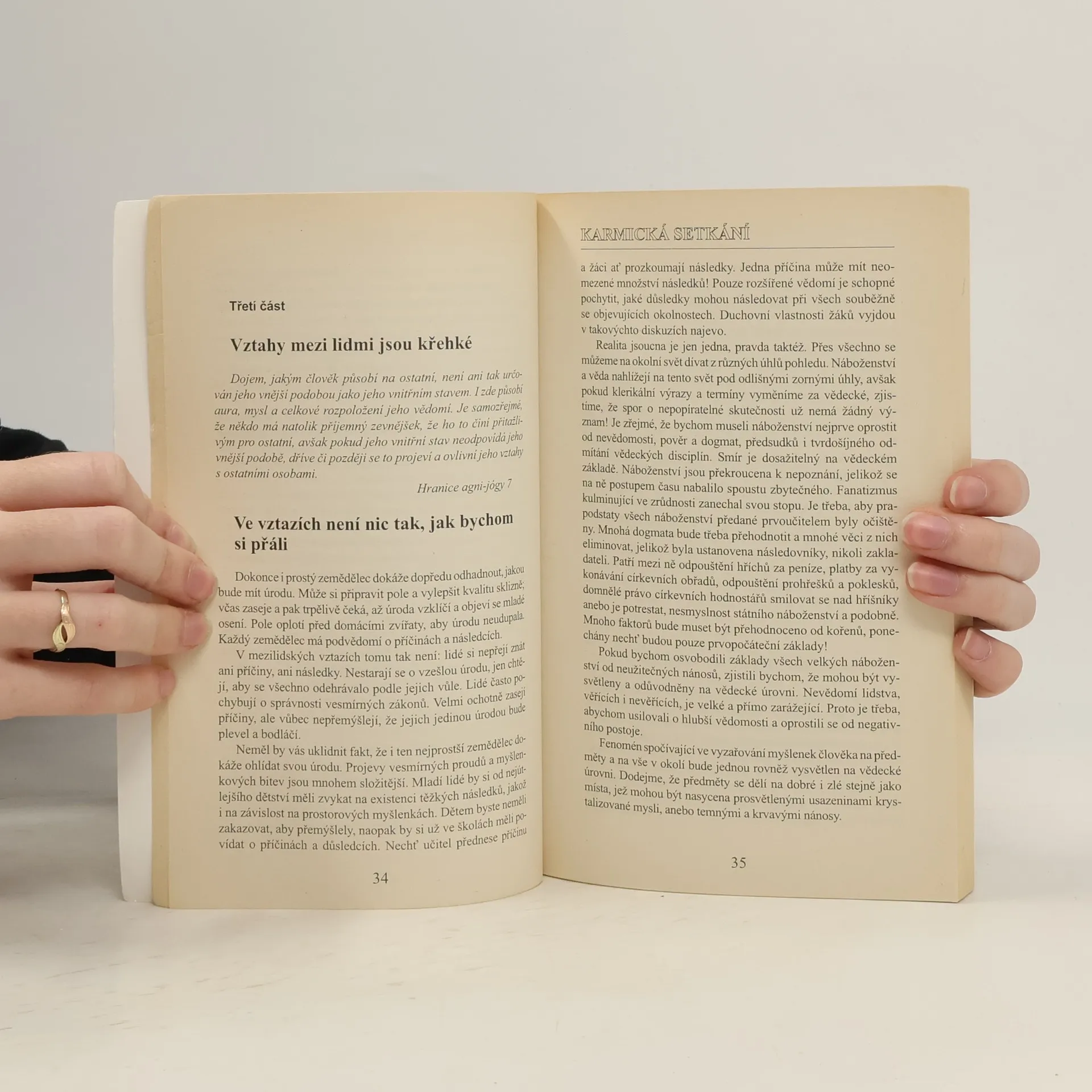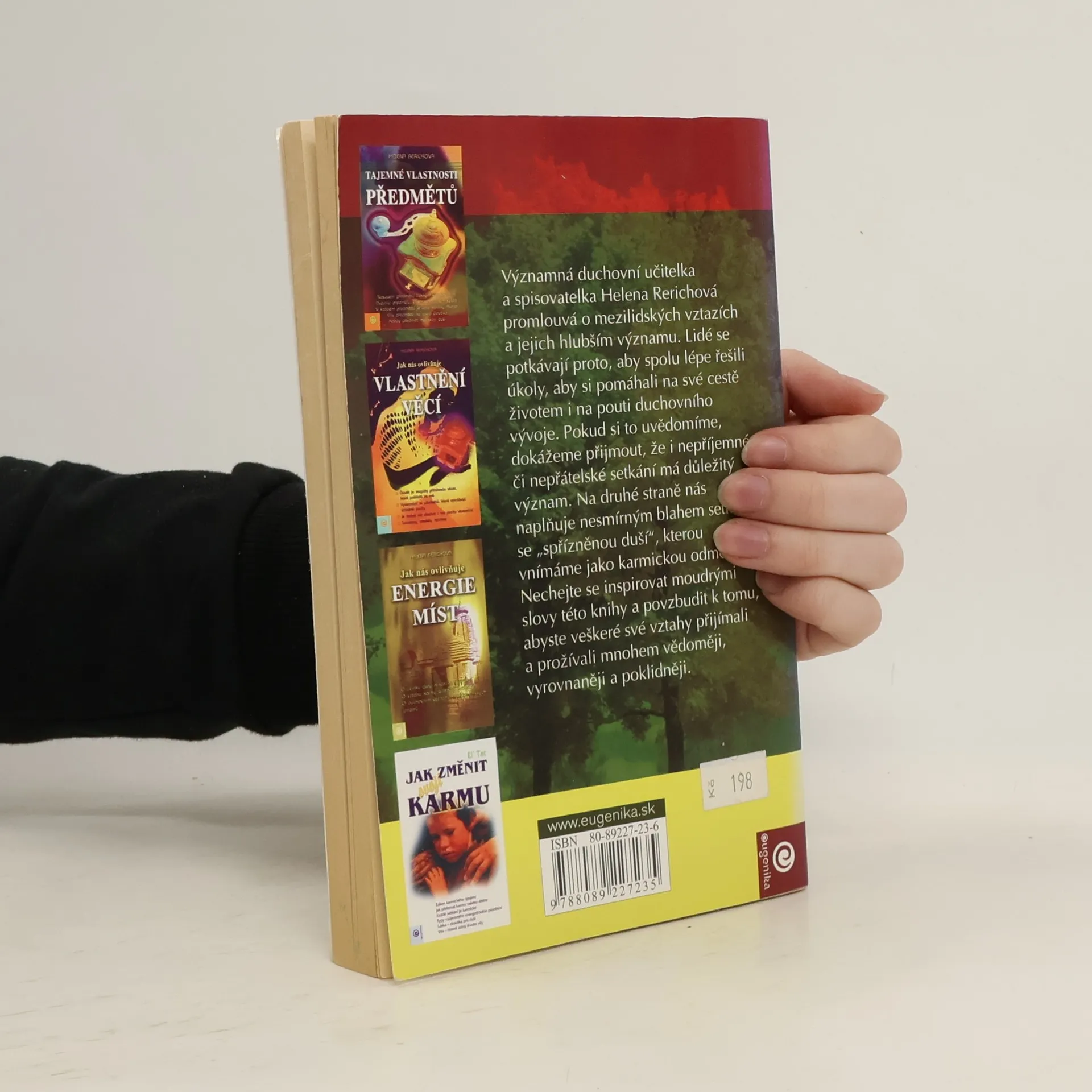 Významná duchovní učitelka a spisovatelka Helena Rerichová promlouvá o mezilidských vztazích a jejich hlubším významu. Lidé se potkávají proto, aby spolu lépe řešili úkoly, aby si pomáhali na své cestě životem i na pouti duchovního vývoje. Pokud si to uvědomíme, dokážeme přijmout, že i nepříjemné či nepřátelské setkání má důležitý význam. Na druhé straně nás naplňuje nesmírným blahem setkání s přirozenou duší, kterou vnímáme jako karmickou odměnu. Nechejte se inspirovat moudrými slovy této knihy a povzbudit k tomu, abyste veškeré své vztahy přijímali a prožívali mnohem vědoměji, vyrovnaněji a poklidněji.