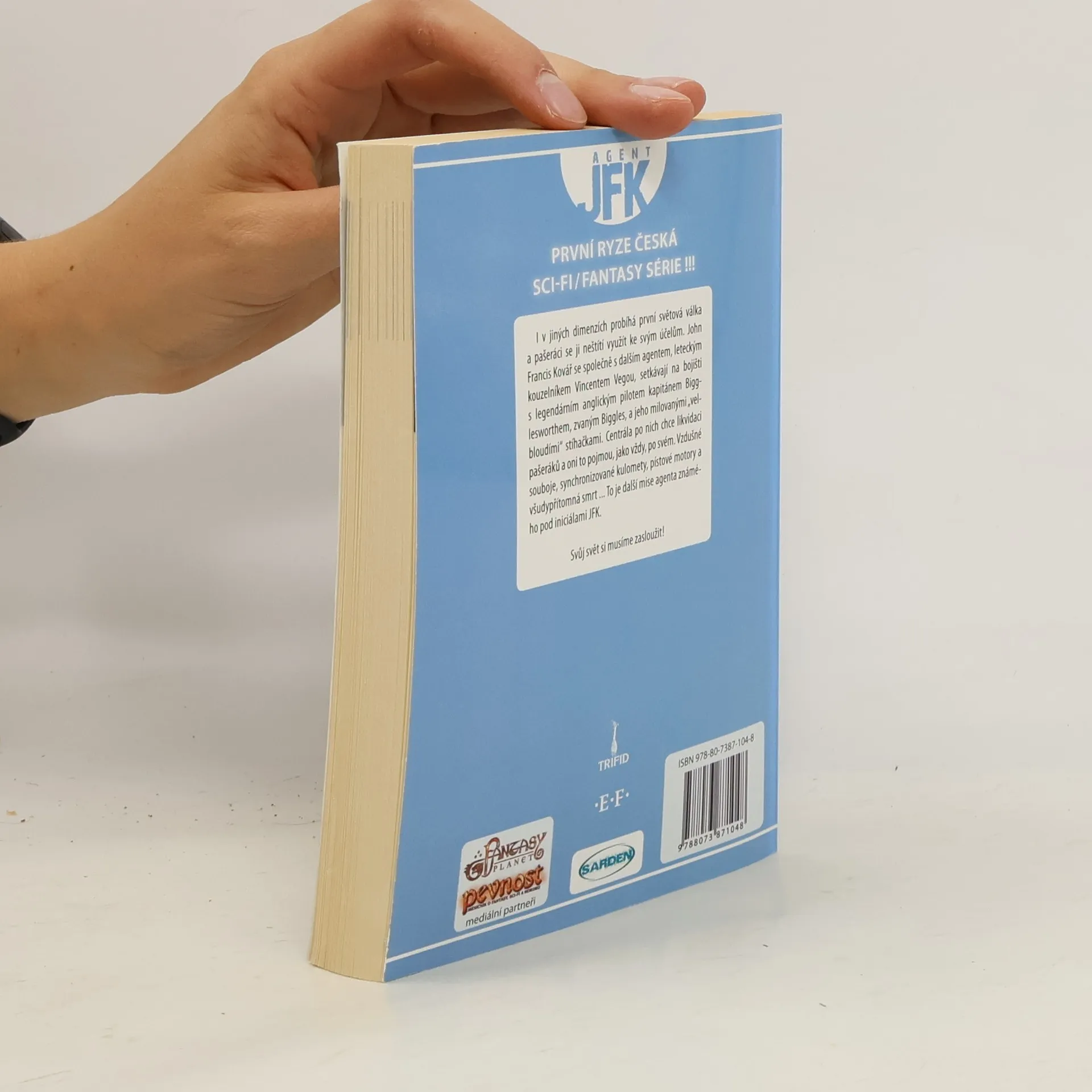 I v jiných dimenzích probíhá první světová válka a pašeráci se ji neštítí využít ke svým účelům. John Francis Kovář společně s dalším agentem, leteckým kouzelníkem Vincentem Vegou se setkávají na bojišti s legendárním anglickým pilotem kapitánem Bigglesworthem, zvaným Biggles, a jeho milovanými „velbloudími" stíhačkami. Centrála po nich chce likvidaci pašeráků, a oni to pojmou, jako vždy, po svém. Vzdušné souboje, synchronizované kulomety, pístové motory a všudypřítomná smrt… To je další mise agenta známého spíše pod iniciálami JFK. Svůj svět si musíme zasloužit!
