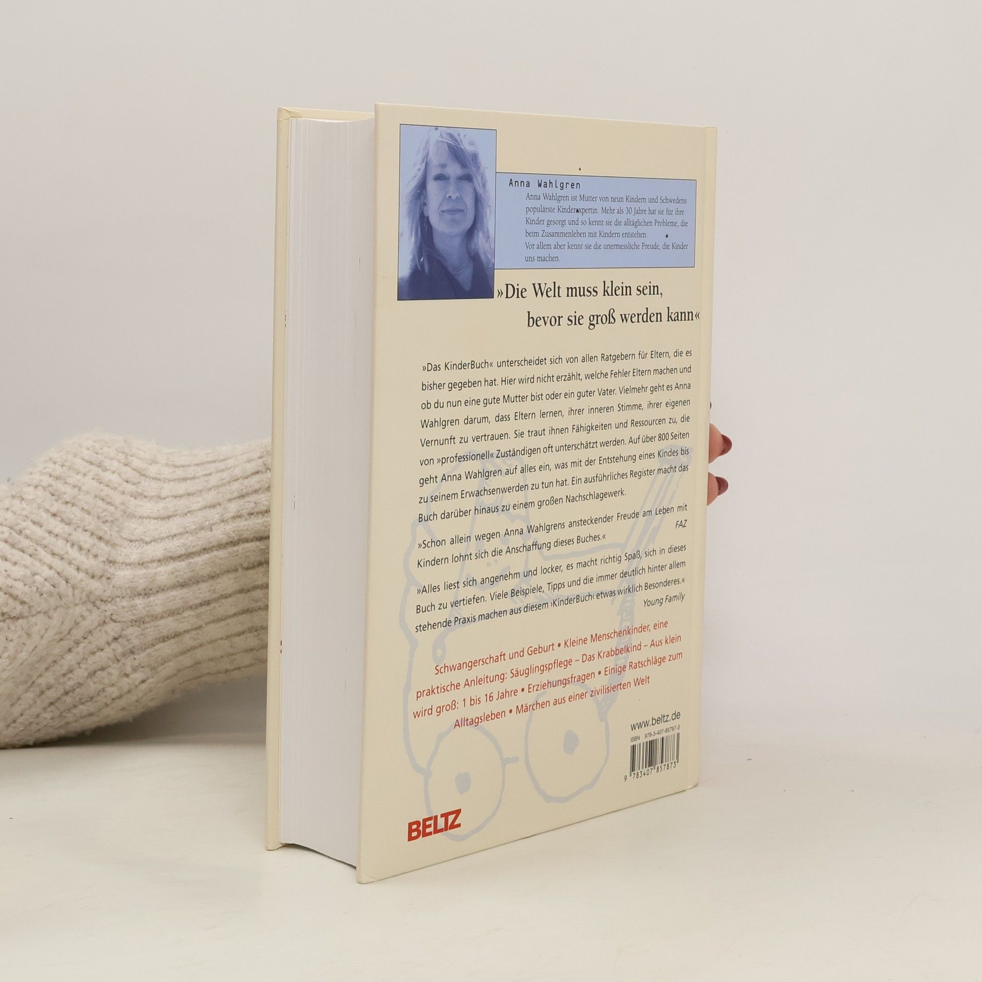 Das Buch von Anna Wahlgren beruht auf dem Erfahrungsschatz einer Mutter, die neun Kinder ins Leben begleitet hat. Ihr Durchblick, ihre Einsicht und tief empfundene Liebe den Kindern gegenüber macht aus dem „KinderBuch“ ein Buch, das seine Leser über Jahre hinweg begleiten wird, das sie persönlich anspricht und ihnen Mut macht. „Hätte ich das Buch doch nur schon bei meinem ersten Kind gehabt“ lautet der Tenor vieler Briefe, die den Verlag und Anna Wahlgren erreicht haben. „Das KinderBuch“ unterscheidet sich von allen Elternratgebern, die es bisher gegeben hat. Hier wird nicht erzählt, welche Fehler Eltern machen und ob du eine gute Mutter oder ein guter Vater bist. Vielmehr geht es Anna Wahlgren darum, dass Eltern ihrer inneren Stimme, ihrer eigenen Vernunft vertrauen. Sie traut den Eltern jene Fähigkeiten und Ressourcen zu, die von der Gesellschaft und den professionell „Zuständigen“ oft unterschätzt werden. Auf über 800 Seiten geht das Buch auf alles ein, was mit der Entstehung eines Kindes bis zu seinem Erwachsenwerden zu tun hat. Ein ausführliches Register am Schluss macht das Buch darüber hinaus zu einem großen Nachschlagewerk, das sämtliche Alltagsprobleme im Umgang mit Kindern aufführt.