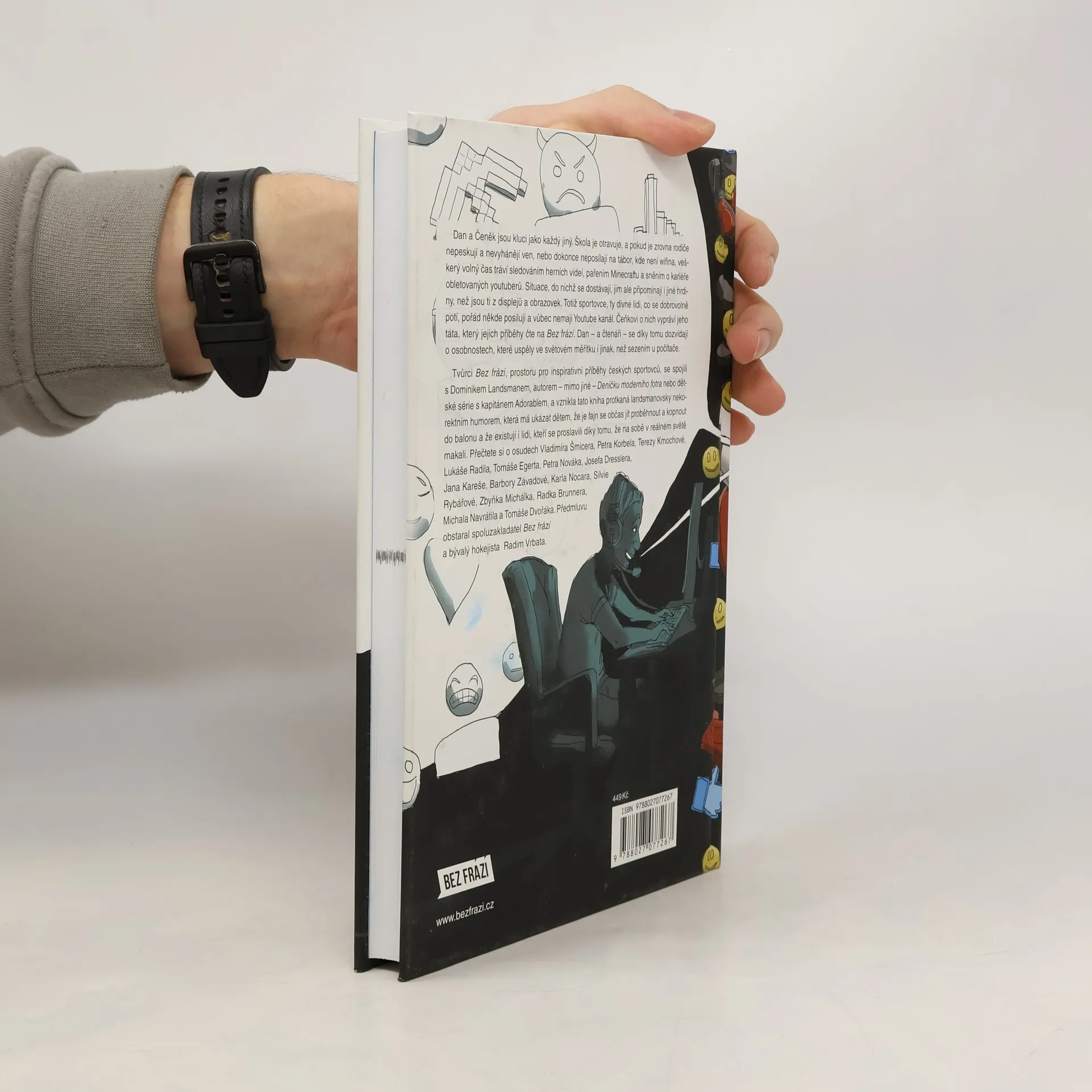 Příběhy Bez frází pro děti přinášejí osudy výjimečných českých sportovců, které vypráví oblíbený spisovatel Dominik Landsman tak, aby jim rozuměli i školáci. Hlavní postavy, Dan a Čeněk, jsou kluci, kteří se potýkají s nudou ve škole, a když je rodiče nevyhánějí ven, tráví čas sledováním herních videí a sněním o kariéře youtuberů. Čeněk se ale dozvídá o sportovcích, kteří se snaží uspět v reálném světě, a to mu pomáhá pochopit, že existují i jiní hrdinové než ti z obrazovek. Kniha, plná Landsmanova nekorektního humoru, ukazuje dětem, že je důležité občas se hýbat a usilovat o své sny. Bez frází spojilo síly s Dominikem Landsmanem a výsledkem je dílo, které motivuje k aktivnímu životnímu stylu. Formát „klasických“ Bez frází zahrnuje 210 stran, na kterých Dan a Čeněk řeší příběhy sportovců jako Vladimír Šmicera, Petr Korbel, Tereza Kmochová a další. Předmluvu napsal spoluzakladatel Bez frází Radim Vrbata. Kniha je určena pro děti, které se chtějí inspirovat úspěchy sportovců a naučit se, že tvrdá práce a odhodlání mohou vést k úspěchu.