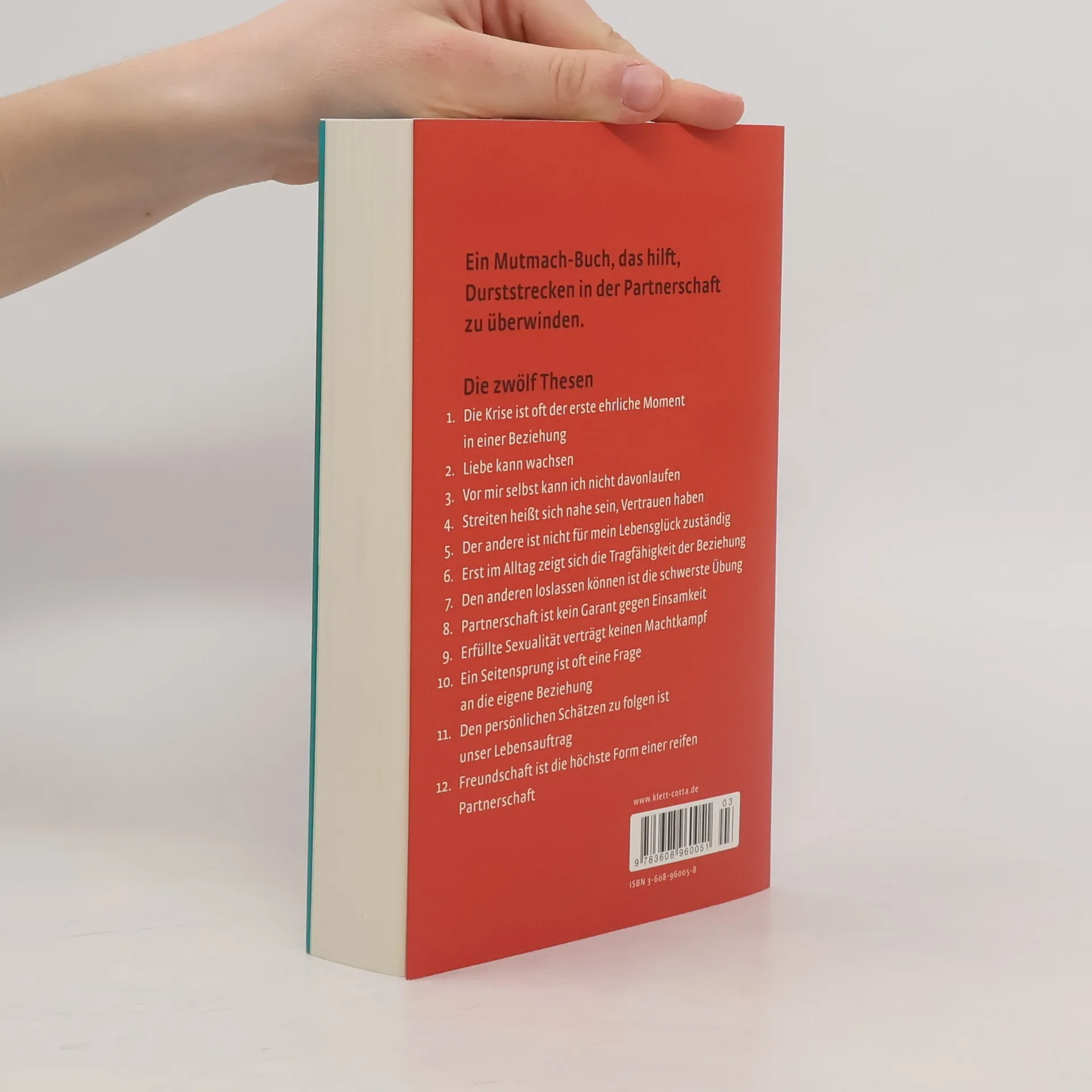 Enttäuschungen und Konflikte sind in vielen Beziehungen unvermeidlich: Treueprobleme, der Alltag, unerfüllte sexuelle Bedürfnisse oder Streitigkeiten im Schlafzimmer können die Partnerschaft belasten. An diesen kritischen Punkten kann jedoch eine positive Wende zu einer reifen Zweisamkeit erfolgen. Dies erfordert Beziehungsarbeit und Kompromisse. Partner müssen erkennen, dass eine Beziehung nicht immer perfekt ist, aber ein starkes Band bilden kann, das sie freundschaftlich verbindet. Mit zunehmender Reife verändern sich auch die Bedürfnisse und Erwartungen an die Beziehung. Wenn wir unseren Partner so akzeptieren, wie er ist, eröffnet sich eine neue Perspektive, und die kleinen Freuden des Alltags bringen mehr Gelassenheit und Lebensfreude. Die zwölf Thesen umfassen: 1. Krisen können ehrliche Momente sein. 2. Liebe hat das Potenzial zu wachsen. 3. Vor sich selbst kann man nicht fliehen. 4. Streiten fördert Nähe und Vertrauen. 5. Der Partner ist nicht für mein Glück verantwortlich. 6. Der Alltag zeigt die Stabilität der Beziehung. 7. Respekt und Loslassen sind wichtig. 8. Partnerschaft schützt nicht vor Einsamkeit. 9. Erfüllte Sexualität erfordert kein Machtspiel. 10. Seitensprünge reflektieren oft die Beziehung. 11. Persönliche Schätze sollten erkannt und bewahrt werden. 12. Freundschaft ist die höchste Form reifer Partnerschaft.