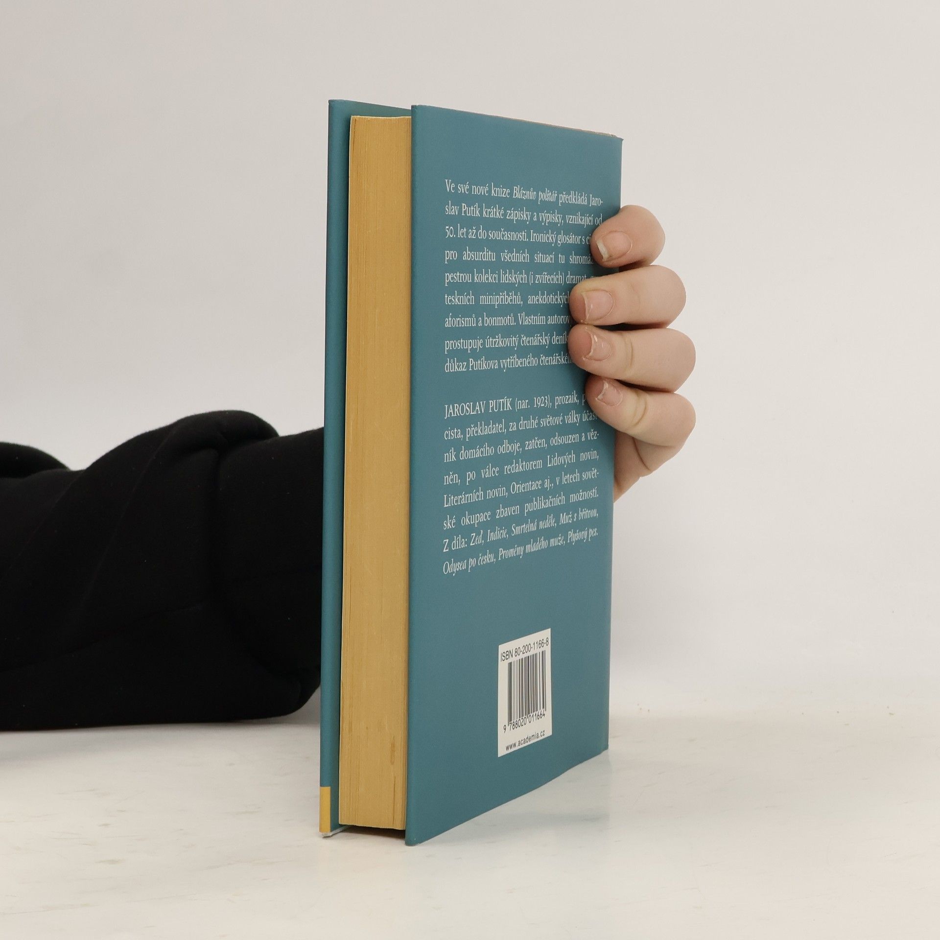 Ve své nové knize Bláznův polštář předkládá Jaroslav Putík (1923) krátké zápisky a výpisky, vznikající od 50. let až do současnosti. Ironický glosátor s citem pro absurditu všedních situací tu shromáždil pestrou kolekci lidských (i zvířecích) dramat, groteskních minipříběhů, anekdotických historek, aforismů a bonmotů. Vlastním autorovým textem prostupuje útržkovitý čtenářský deník, výmluvný důkaz Putíkova vytříbeného čtenářského vkusu.