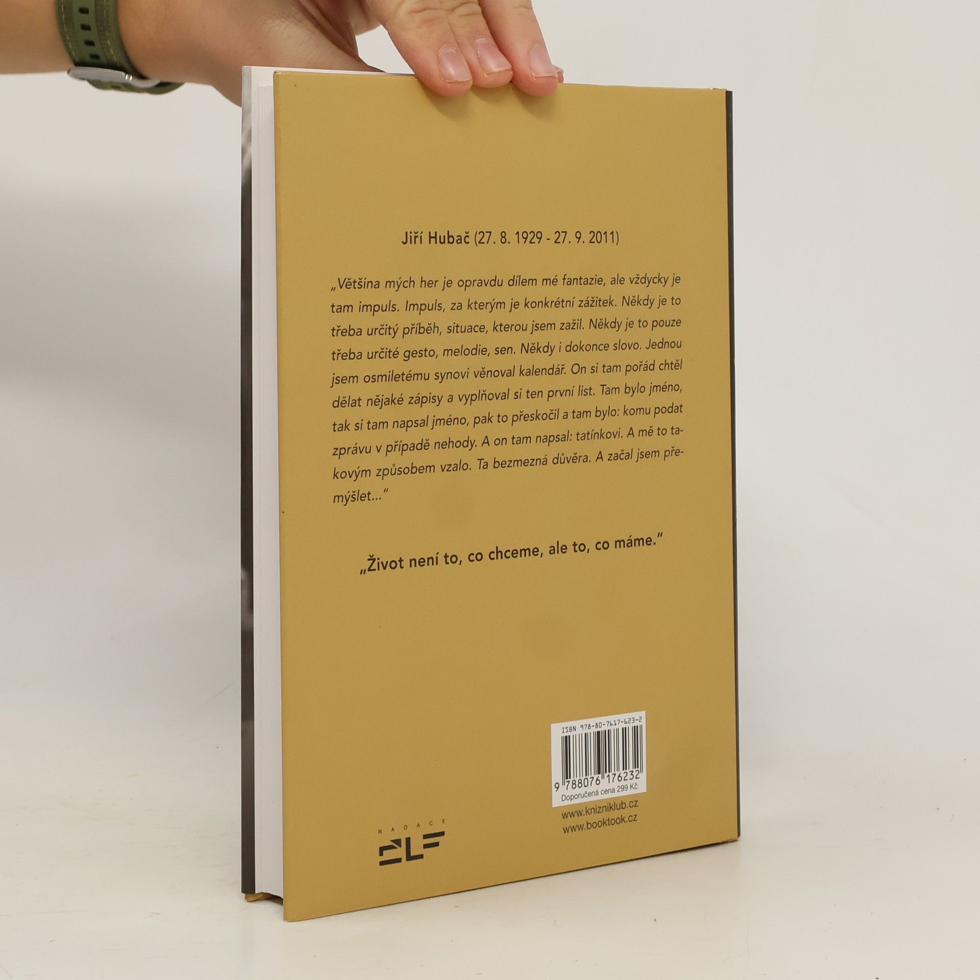 Celovečerní filmy Babí léto, Fany nebo Učitel tance. Oblíbené seriály Sanitka a Dobrá voda. Televizní filmy Ikarův pád, Tažní ptáci či Nezralé maliny. Všechna tato díla mají jednoho společného jmenovatele, a tím je scenárista Jiří Hubač (1929–2011) – autor divadelních her, filmových scénářů a celé řady televizních adaptací. Jehož díla patří do zlatého fondu české televizní i divadelní tvorby. Tato kniha představuje Jiřího Hubače nejen jako scenáristu a dramatika, ale i jako člověka. Prostřednictvím rozhovorů s jeho rodinou a kolegy ho poznáváme jako mimořádně pracovitého a pilného tvůrce, jako vzorného manžela a tatínka, ale také jako celoživotního obhájce pravdy. Biografie Jiřího Hubače je doplněná řadou fotografií z jeho filmových projektů i ze soukromého archivu rodiny.
