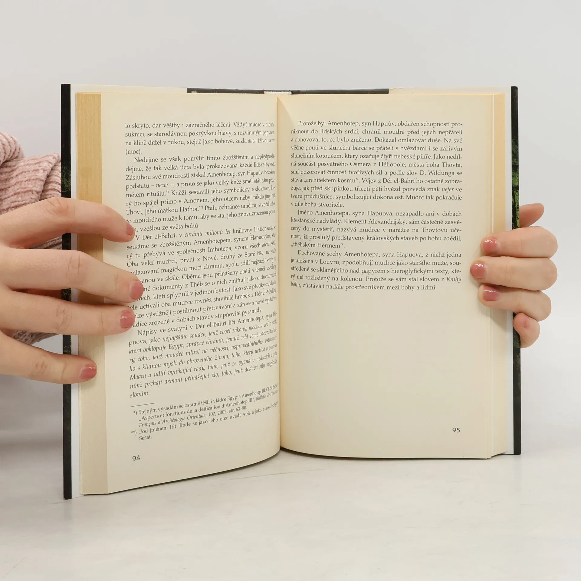 Nedávno vydané dílo Christiana Jacqa se vymyká obvyklým publikacím. Není to životopis ani chronologický přehled faraonů, ale pokus o zachycení života starých Egypťanů v jeho nejvlastnější podobě. Kniha přibližuje jejich chápání světa, civilizace a podstaty lidské existence, stejně jako snahu o zajištění věčného znovuzrození. Egypťané kladli důraz na moudrost a její uplatnění v politice, ekonomice a společnosti. Pochopení tohoto myšlení, které vedlo k obdivovaným stavbám, přispívá k lepšímu porozumění více než pětitisícileté historii. V knize se objevují výjimečné osobnosti, známé i méně známé, které se svým smýšlením a činy staly mudrci. Mezi nimi najdeme Imhotepa, uctívaného stavitele a léčitele, vezíra Ptahhotepa, kacíře Achnatona, zákonodárce Haremheba, královnu Hatšepsutu, Nefertari a Anchnesneferibre, božskou manželku Amonovu. Jejich poselství, zachycené na papyrech a stěnách chrámů, zůstává aktuální dodnes. Pro čtenáře, který chce poznat duchovní život a mravní zásady starých Egypťanů, se tato kniha stane cenným pramenem poznání a inspirace.