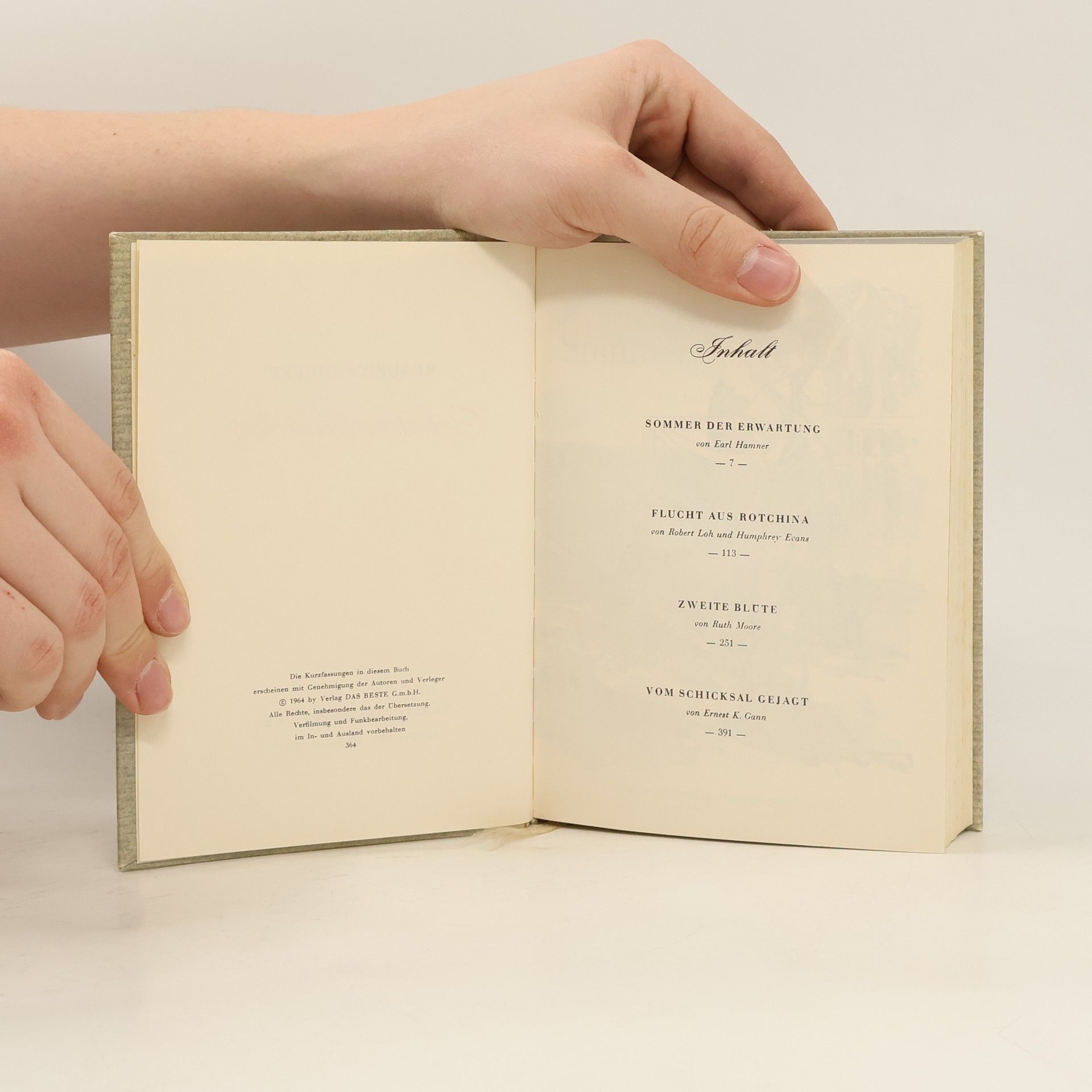Reader's Digest Auswahlbücher. Sommer der Erwartung. Flucht aus Rotchina. Zweite Blüte. Vom Schicksal Gejagt., Earl Hamner, Robert Loh, Humphrey Evans, Ruth Moore, Ernest K. Gann