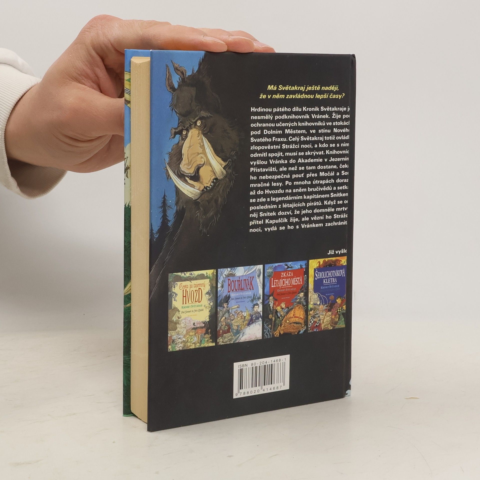 Má Světakraj ještě naději, že v něm zavládnou lepší časy? Hrdinou pátého dílu Kronik Světakraje je zakřiknutý podknihovník Vránek. Žije pod ochranou učených knihovníků ve stokách pod Dolním Městem, ve stínu Nového Svatého Fraxu. Celý Světakraj totiž ovládli zlopověstní Strážci noci, a kdo se s nimi odmítl spojit, musí se skrývat. Knihovníci vyšlou Vránka do Akademie v Jezerním Přístavišti, ale než se tam dostane, čeká ho nebezpečná pouť přes Močál a Soumračné lesy. Po mnoha útrapách dorazí až do Hvozdu na sněm bručivědů a setká se zde s legendárním kapitánem Snítkem, posledním z létajících pirátů. Když se od něj Snítek dozví, že jeho domněle mrtvý přítel Kapulčík žije, ale vězní ho Strážci noci, vydá se ho s Vránkem zachránit…