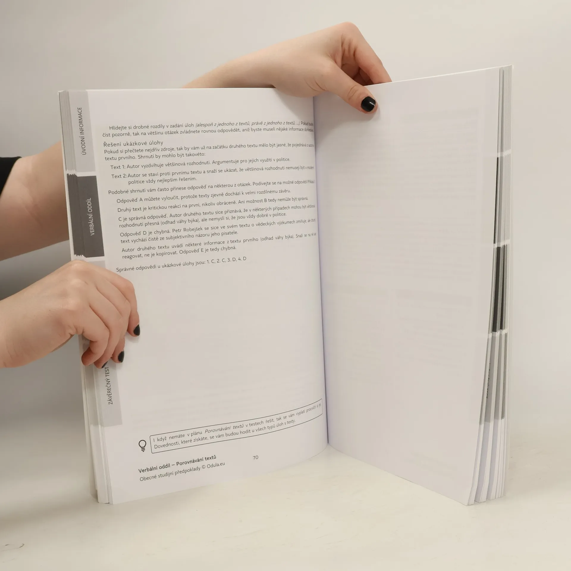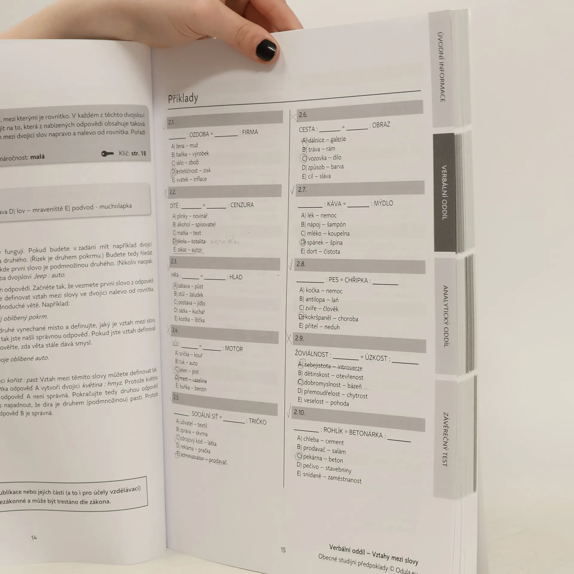 Tato publikace Vám poskytne vše, co budete potřebovat k úspěšné přípravě na testy OSP společnosti Scio. Ty se používají v rámci přijímacího řízení mnoha vysokých škol v České republice i na Slovensku. V první části se seznámíte s tím, co to testy Obecných studijních předpokladů jsou, a naučíte se strategie jak v nich postupovat. Další část se věnuje jednotlivým oddílům testu a typům úloh. Nejdříve je vždy detailně ukázán postup, jak se dají dané úlohy řešit rychle a efektivně. Ten si pak můžete vyzkoušet na stovkách řešených příkladů. Poslední část publikace je tvořena závěrečným testem. Ten strukturou i počtem úloh přesně odpovídá tomu, který Vás u přijímaček čeká. Díky tomu, že je k němu i percentilová tabulka, se dozvíte i jak byste dopadli a jestli by Váš výsledek stačil k přijetí na Vámi vybranou fakultu.