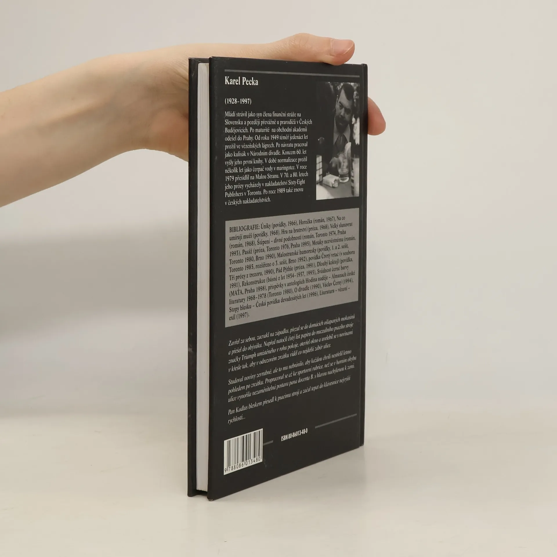 Karel Pecka se stal jednou z výrazných postav české literatury. Svoji literární dráhu započal v šedesátých letech, kdy mu vyšly první knihy. Po letech nedobrovolné odmlky vycházejí v devadesátých letech znovu. První vydání dosud nikdy nepublikovaných povídek z pozůstalosti autora navazuje na úspěšné Malostranské humoresky a autorovým charakteristickým stylem reaguje na polistopadový vývoj v Čechách, viděný nejen očima Peckových malostranských postaviček. S žánrovými fotografiemi Stanislava Tůmy.