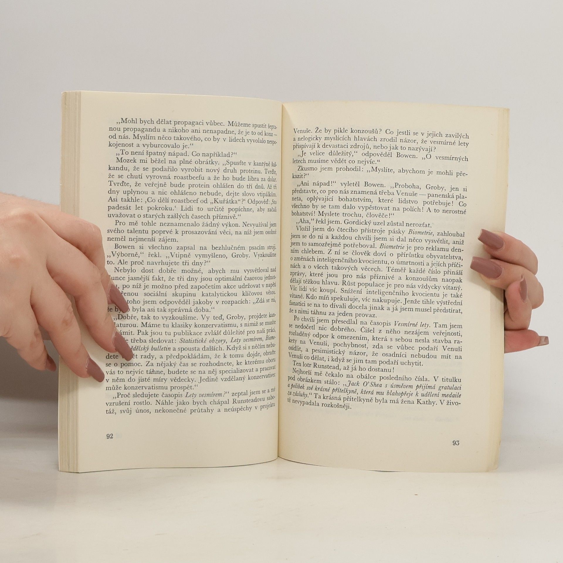 Spojené státy za sto let. Přelidněný svět ovládají gigantické reklamní společnosti. Zabití v rámci průmyslové msty se považuje za běžný přestupek, ale zabití bez výstrahy - to je obchodní urážka. Rozpoutává se bezohledná bitva o největší kšeft lidské historie - o právo kolonizovatVenuši. V nejprudším ohni se ocitá šéftextař projektu Venuše Mitchell Courtenay, proti němuž se staví nejenom konkurenční reklamní společnost a podzemní hnutí konzoušů, ale i jeho vlastní žena Kathy. Život Courtenayem smýká z USA na jižní pól, na plantáže koncernu Chlorella v Kostarice i na osídlený Měsíc a uchystává mu překvapení za překvapením - s největším šokem, jak se sluší a patří, nakonec. -- zdroj: legie.info --