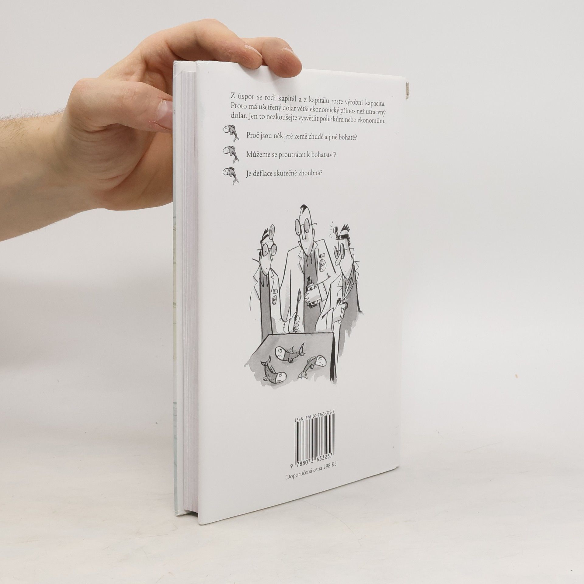 Jak ekonomika roste a proč krachuje V tomto podobenství o ekonomické historii Spojených států amerických se čtenáři setkají s mnoha povědomými postavami a událostmi. Protože však žánr ilustrované knihy bajek vyžaduje značné zjednodušení a zobecnění, museli autoři vypustit řadu podrobností. Hrdinové této knihy nejsou jen odkazem na známé postavy americké politiky a společnosti, ale rovněž zosobňují některé obecné myšlenky a ideologie. Autoři se domnívají, že potřeba větší ekonomické srozumitelnosti nebyla ještě nikdy naléhavější než dnes, a proto zvolili žánr bajky o rybách, jako ten nejlepší a nejostřejší intelektuální nástroj k prosekání a prosvětlení ekonomické džungle.