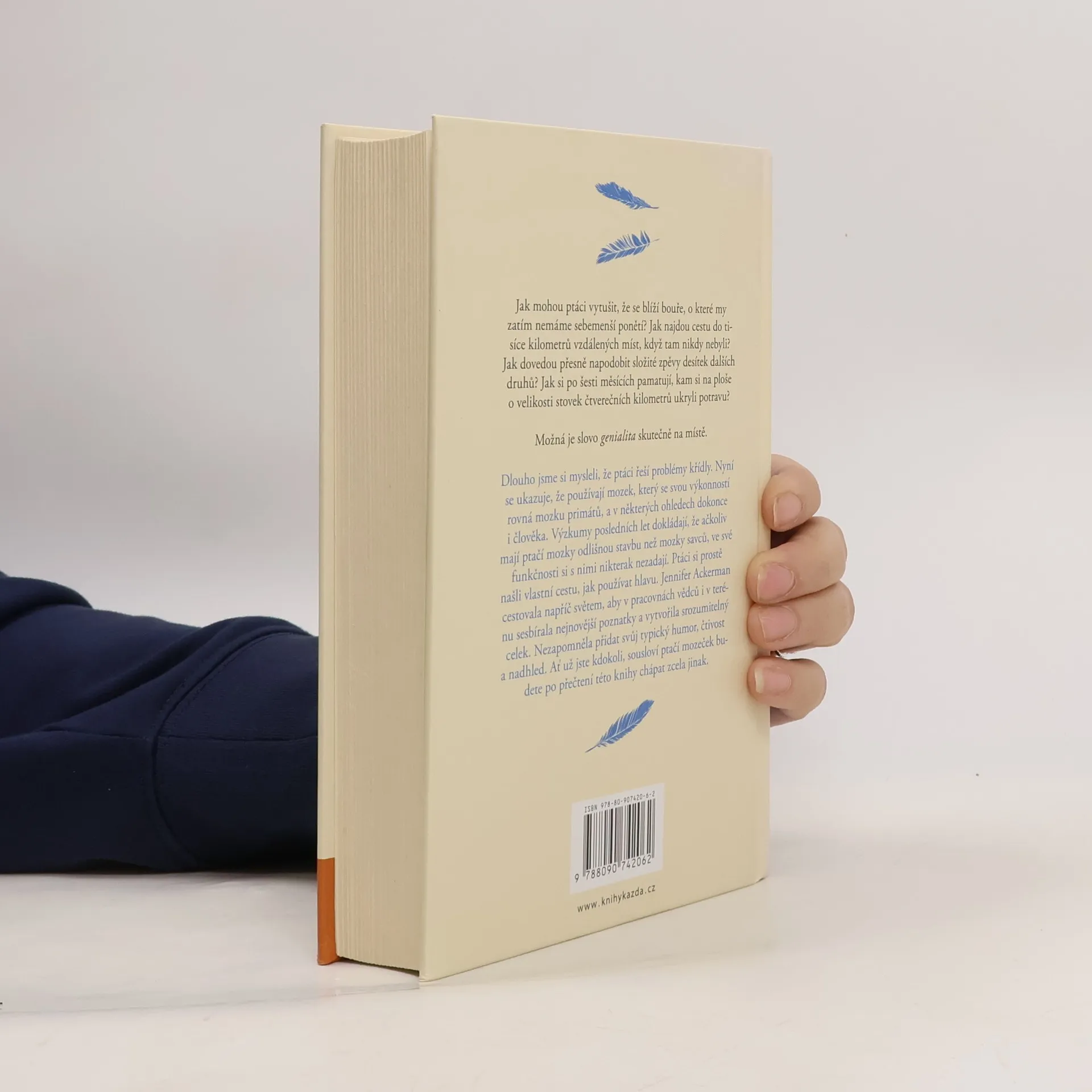 Jak mohou ptáci vytušit, že se blíží bouře, o které my zatím nemáme sebemenší ponětí? Jak najdou cestu do tisíce kilometrů vzdálených míst, když tam nikdy nebyli? Jak dovedou přesně napodobit složité zpěvy desítek dalších druhů? Jak si po šesti měsících pamatují, kam si na ploše o velikosti stovek čtverečních kilometrů ukryli potravu? Možná je slovo genialita skutečně na místě. Dlouho jsme si mysleli, že ptáci řeší problémy křídly. Nyní se ukazuje, že používají mozek, který se svou výkonností rovná mozku primátů, a v některých ohledech dokonce i člověka. Výzkumy posledních let dokládají, že ačkoliv mají ptačí mozky odlišnou stavbu než mozky savců, ve své funkčnosti si s nimi nikterak nezadají. Ptáci si prostě našli vlastní cestu, jak používat hlavu. Jennifer Ackerman cestovala napříč světem, aby v pracovnách vědců i v terénu sesbírala nejnovější poznatky a vytvořila srozumitelný celek. Nezapomněla přidat svůj typický humor, čtivost a nadhled. Ať už jste kdokoli, sousloví ptačí mozeček budete po přečtení této knihy chápat zcela jinak.