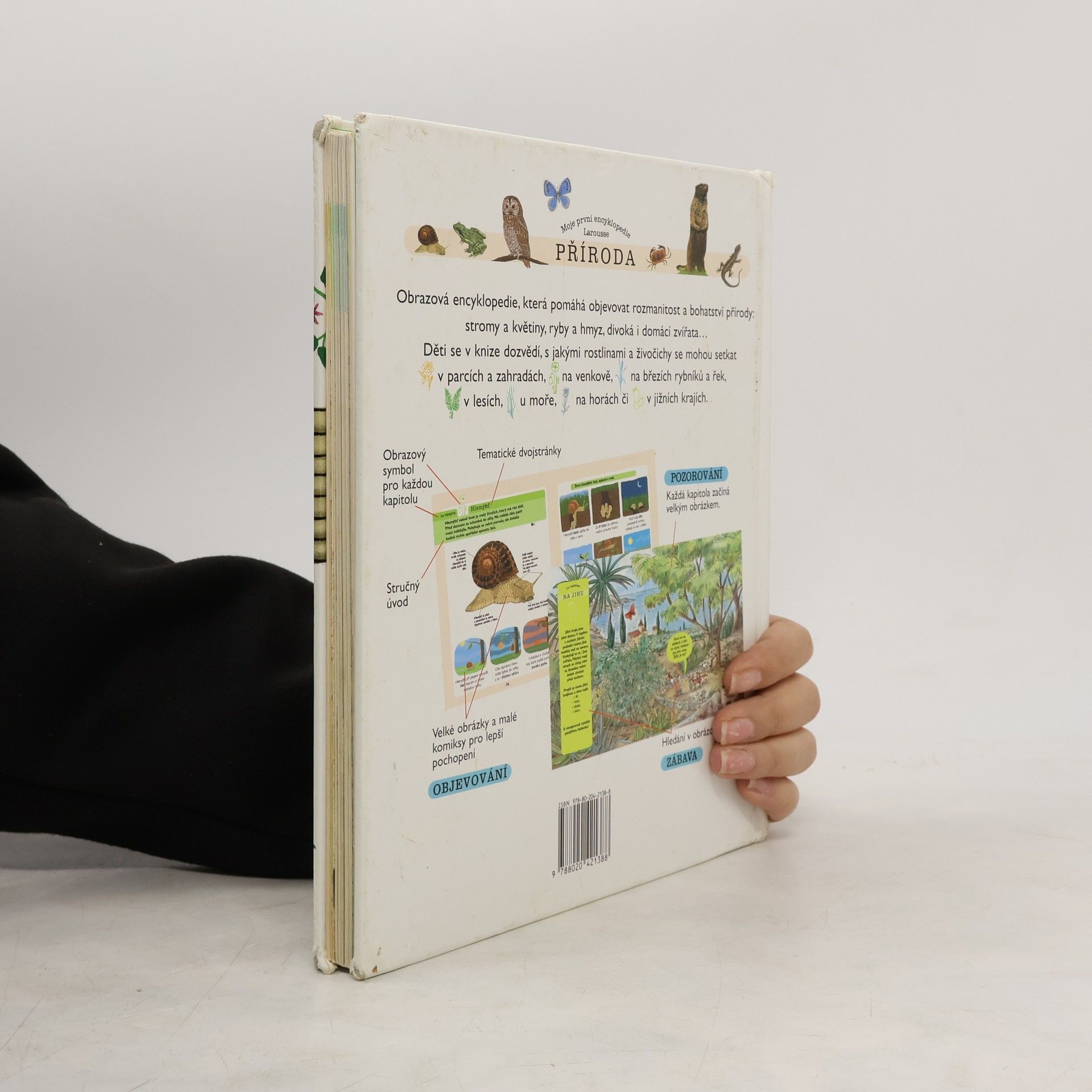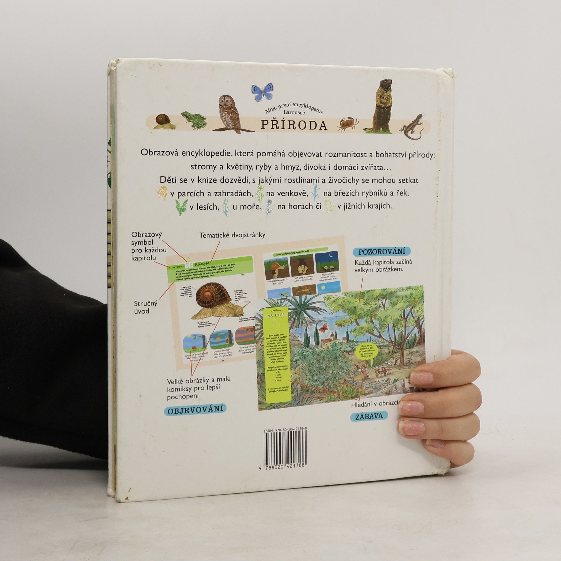 Obrazová encyklopedie určená dětem, která pomáhá poznat rozmanitost a bohatost přírody: stromy a květiny, drobné živočichy, divoká i hospodářská zvířata. Mladé čtenáře provází světem zahrad a parků, zavede je na venkov, do lesů a hor, na mořská pobřeží i břehy rybníků a řek.