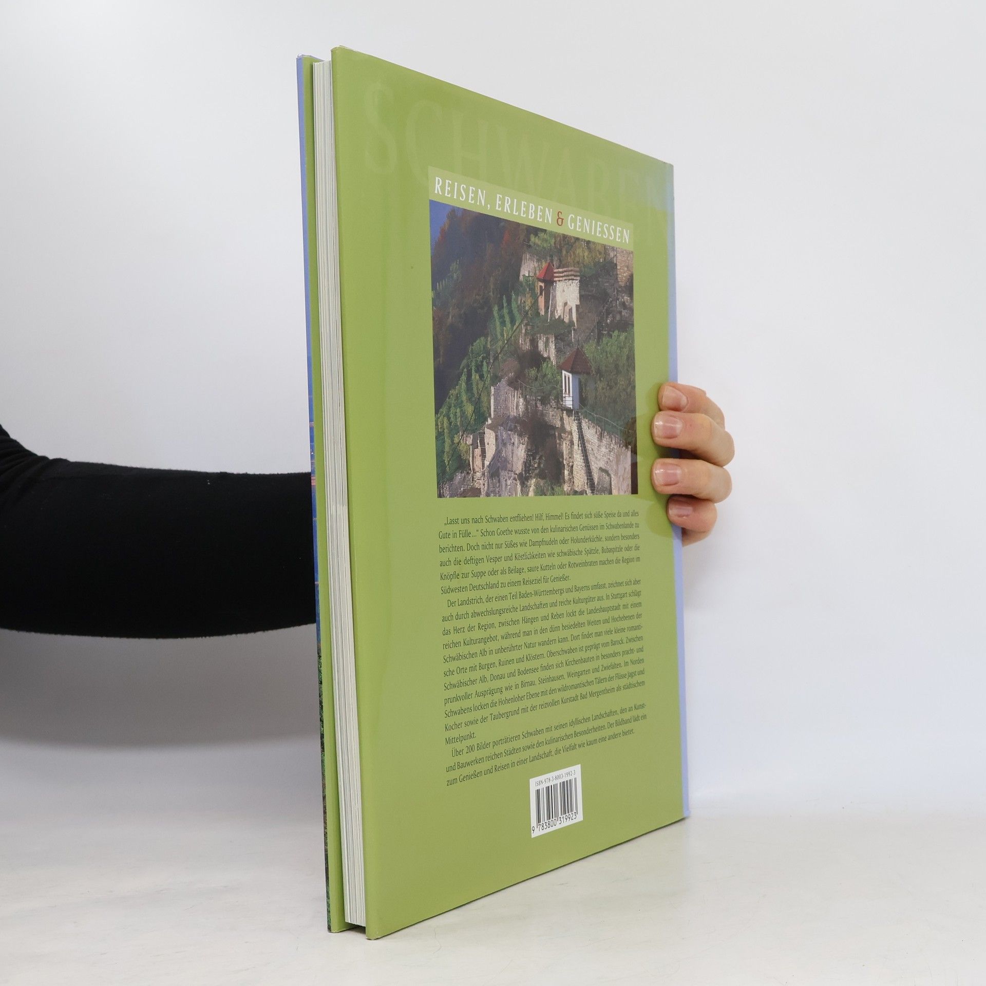 „Lasst uns nach Schwaben entfliehen! Hilf, Himmel! Es findet sich süße Speise da und alles Gute in Fülle.“ Schon Goethe wusste von den kulinarischen Genüssen im Schwabenlande zu berichten. Doch nicht nur Süßes wie Dampfnudeln oder Holunderküchle, sondern besonders auch die deftigen Vespern und Köstlichkeiten wie schwäbische Spätzle, Lumpensupp, Luckeleskäs oder die Knöpfle zur Suppe oder als Beilage, saure Kutteln oder Rotweinbraten machen den Landstrich im Südwesten Deutschland zu einem Reiseziel für Genießer. In diesem Bildband werden die schönsten Seiten von Schwaben vorgestellt: Die faszinierende Landschaft, die reichen Kunst- und Kulturschätze und die kulinarischen Besonderheiten der Region. Themendoppelseiten informieren zum Beispiel über Spätzle und Schupfnudeln, Bodenseefelchen, Hutzelbrot, Pfitzauf und Springerle oder Besenwirtschaften. Stimmungsvolle Restaurants und leckere Gerichte machen Lust auf mehr. Die Bilder laden ein zum Genießen und Reisen in einer Landschaft, die eine Vielfalt wie kaum eine andere bietet.