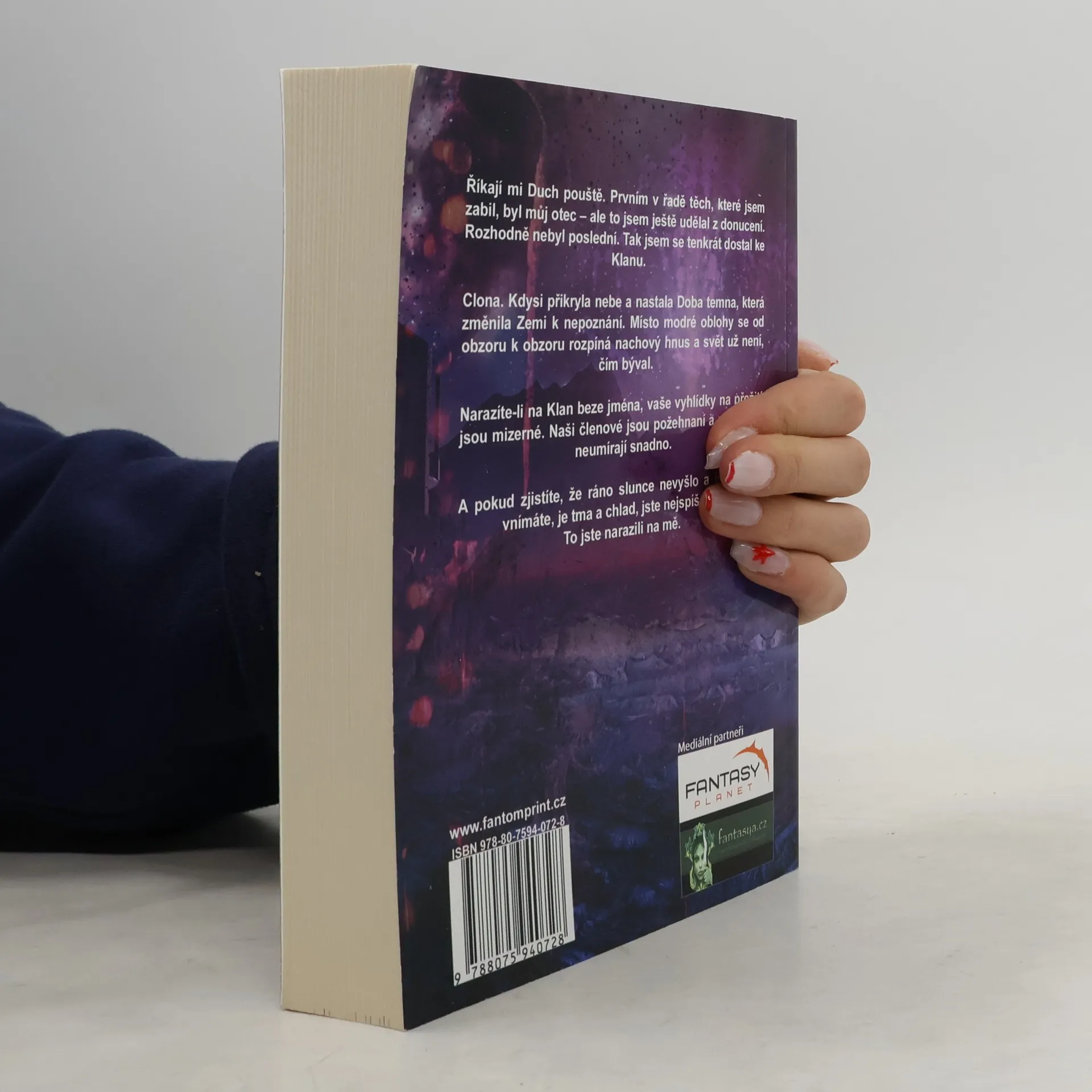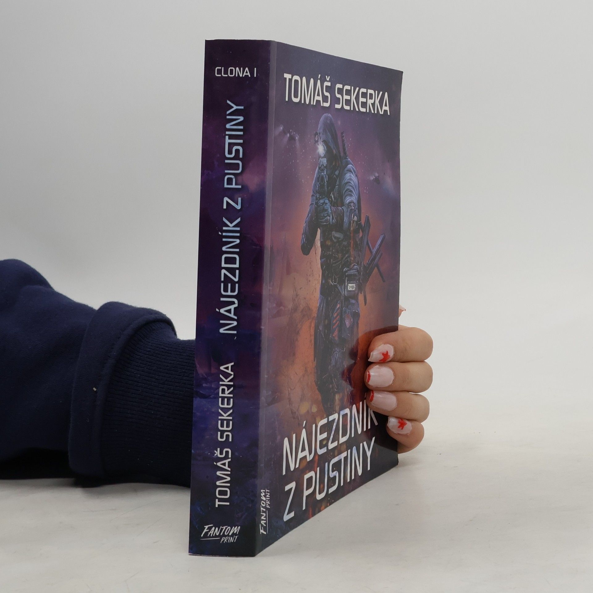 „Zaútočili rychle, sehraně, tvrdě. Jako praví profesionálové. Tak, jak se to dělá. Tak, jak to máme rádi.“ Vítejte v postkapitalismu. Letopočet se nyní počítá od Doby temna, po níž nepřišlo světlo zářných zítřků, nýbrž Clona. A její světlo z vás udělá magora. Nebo génia. Je v tom rozdíl? Přežít v Pustině, za hranicemi měst a megaměst, je těžké, ale komu vadí nepřetržité války barbarských kmenů, nedostatek potravin i vody, může se zkusit probít a prostřílet. Členové Klanu o tom vědí svoje. Mají navíc víru v Rubínového Boha, díky které mohou bojovat, i když jejich tělo mělo už dávno zemřít. Je v tom vážně jenom víra, nebo něco víc? Ani v megaměstech však není život růžový jako světlo Clony. Synonymum nekontrolovatelné zkázy zní KiSMET. Záhadný virus, napadající přímo lidský organismus skrze informační technologie, se sice nešíří exponenciálně jako klasický počítačový virus, ale o to víc je pro lidskou společnost smrtící. Říká se, že při pohledu do Clony zešílíte. Možná vás ale čekají jenom příliš kruté pravdy. Tomáš Sekerka je novou tváří na poli české science fiction a hned od začátku netroškaří. Nakladatelství Fantom Print přichází s prvním románem z dvoudílné série Clona. Nájezdník z Pustiny, dystopické dobrodružství plné boje o přežití, futuristických scén, kvantových počítačových technologií a vojenské akce vás vezme útokem a nenechá na pochybách, že mladá krev české fantastiky má co nabídnout.