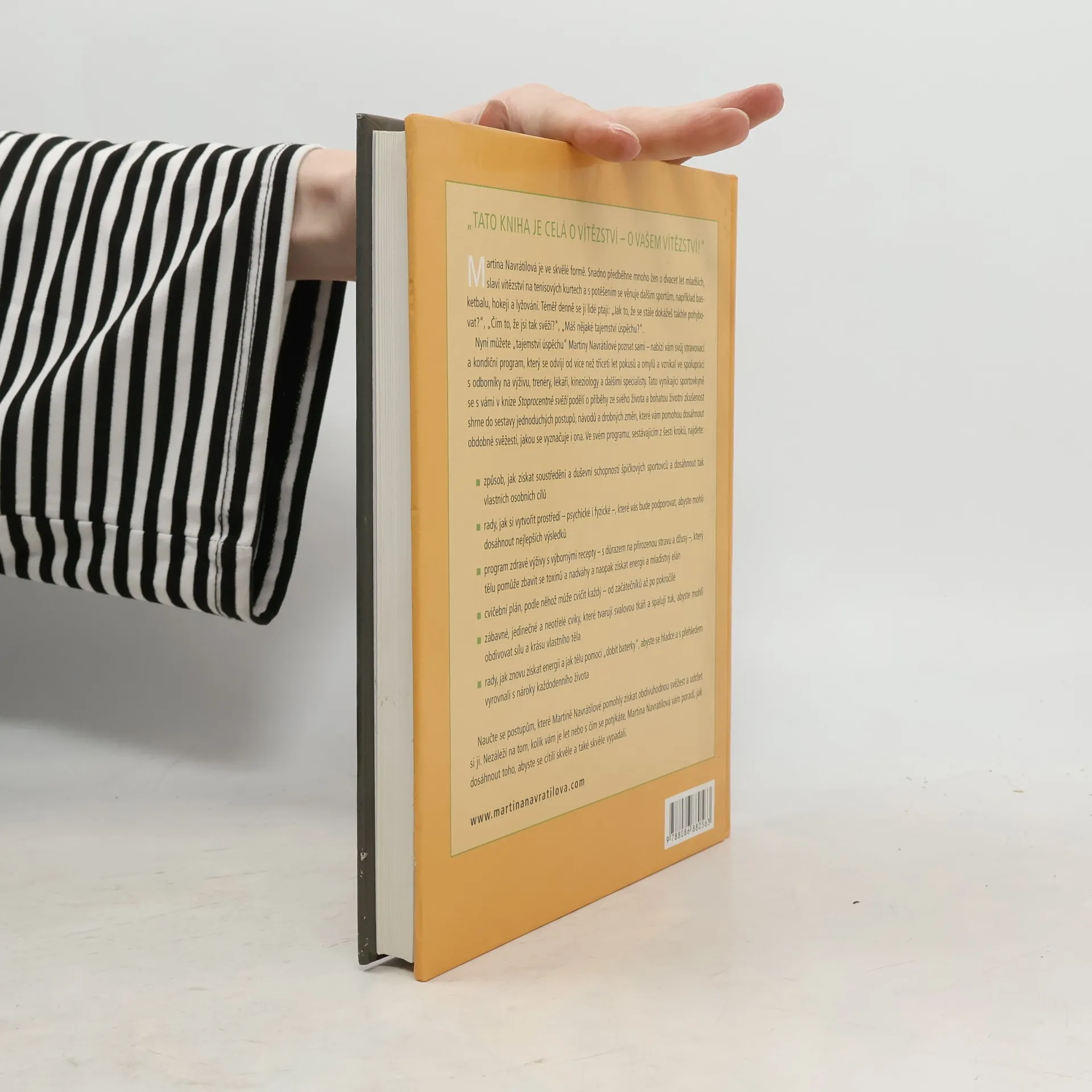 Tato kniha se zaměřuje na vítězství - vaše vítězství! Martina Navrátilová, ve skvělé formě, předbíhá ženy o dvacet let mladší a užívá si nejen tenis, ale i další sporty jako basketbal, hokej a lyžování. Lidé se jí často ptají na tajemství její svěžesti a úspěchu. Nyní máte možnost poznat její "tajemství" prostřednictvím stravovacího a kondičního programu, který vznikal více než třicet let a byl vytvořen ve spolupráci s odborníky. Navrátilová sdílí příběhy ze svého života a shrnuje bohaté zkušenosti do jednoduchých postupů, které vám pomohou dosáhnout podobné svěžesti. Její program zahrnuje šest kroků: metody pro zlepšení soustředění a duševních schopností, rady pro vytvoření podpůrného prostředí, zdravou výživu s recepty zaměřenými na přirozenou stravu, cvičební plán pro všechny úrovně, unikátní cviky pro tvarování svalů a tipy na obnovení energie. Naučte se postupy, které Martině pomohly udržet obdivuhodnou svěžest. Bez ohledu na věk nebo výzvy, které čelíte, vám poskytne rady, jak se cítit skvěle a vypadat skvěle.