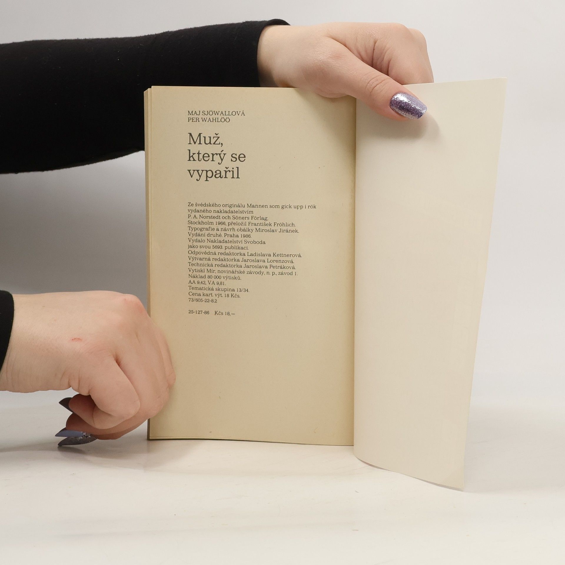 Detektivní román, v němž Martin Beck pátrá po zmizelém stockholmském novináři, který jel údajně dělat reportáž do Budapešti, a nakonec musí vyřešit jeho vraždu. Ze švédského originálu „Mannen som gick upp i rök“, vydaného nakladatelstvím P.A. Norstedt och Söners Förlag, Stockholm1966, přeložil František Fröhlich. Vydání druhé.