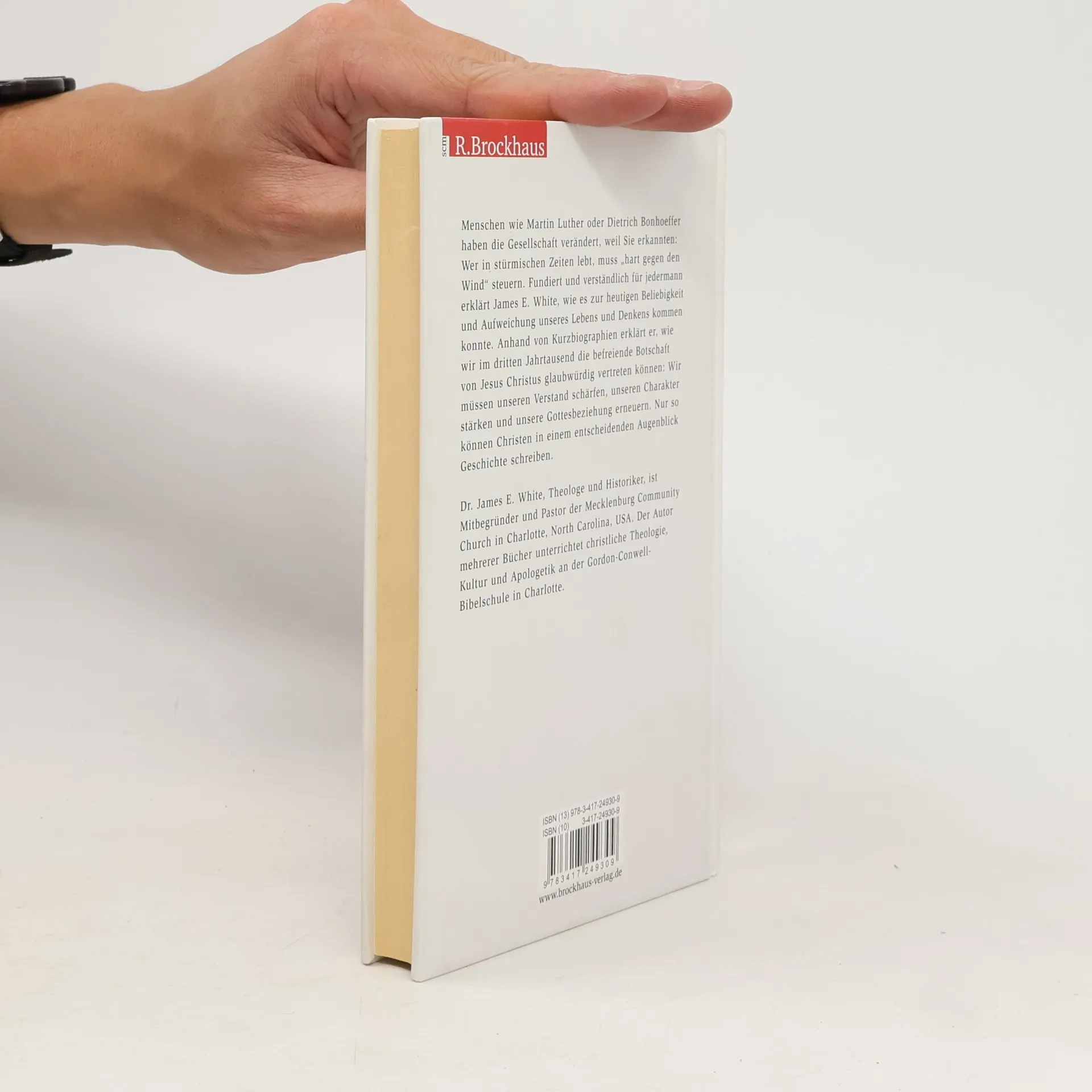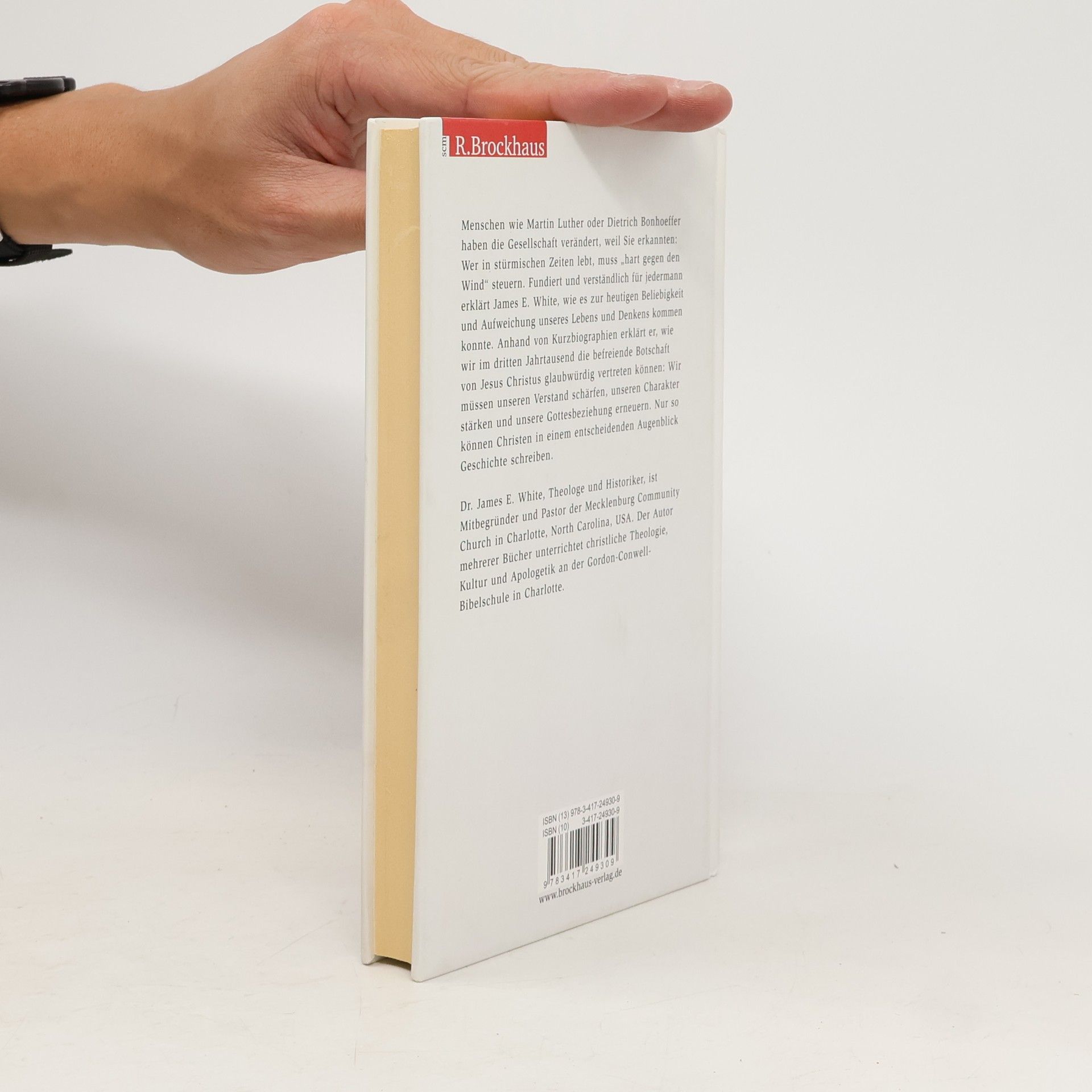 Menschen wie Martin Luther oder Dietrich Bonhoeffer veränderten die Gesellschaft. Sie hatten eines erkannt: Wer in stürmischen Zeiten lebt, muss „hart gegen den Wind“ steuern. Wie können wir heute einen Unterschied machen, während die Postmoderne unser Denken und Leben erschüttert? Ein Blick zurück hilft: Fundiert und verständlich für jedermann erklärt White, wie es zur Beliebigkeit und Aufweichung unseres Lebens und Denkens kam. Anhand von Kurzbiographien erklärt er, wie wir im dritten Jahrtausend die befreiende Botschaft von Jesus Christus glaubwürdig vertreten können: Wir müssen unseren Verstand schärfen, unseren Charakter stärken und unsere Gottesbeziehung erneuern. Nur so können Christen in einem entscheidenden Augenblick Geschichte schreiben.