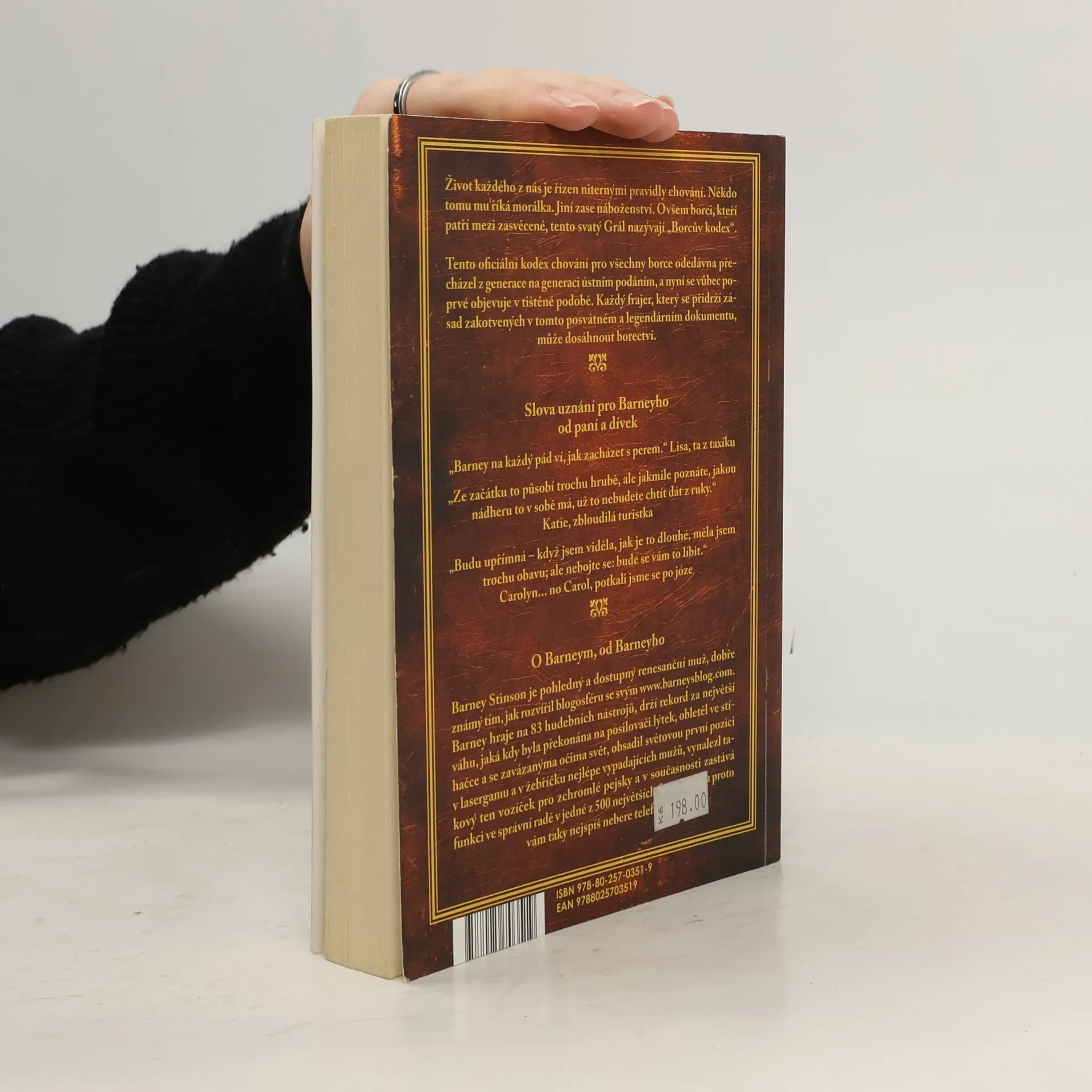 Barney Stinson je jednou z hlavních postav seriálu Jak jsem poznal vaši matku, a pro mnohé je nejdůležitější. Je renesanční osobností, mužem, který ví, jak užívat života, a chce ostatní naučit tomuto umění. K tomu slouží Borcův kodex, sto padesát stručných a jasných pouček, tabulky, grafy a rovnice, které popisují svět borců, kde na čelném místě stojí borec, za ním jeho parťáci a poté kočičky. Otázkou je, proč „borcův“? Překladatel se snaží co nejvíce přiblížit originálu a odchylky mají principiální důvody. Když Barney používá slova jako „bro“, „Nabroleon“ nebo „brofession“, české ekvivalenty jako „brácha“ nebo „parťák“ nefungují. Slovo borec nabízí lepší možnosti a vyjadřuje hodnocení a charakterizaci. Překladatel se také nesnaží napodobovat cizí překlad, ale vytváří vlastní verzi. Vít Penkala, překladatel, si skromně myslí, že je borec, a tím se snaží zachytit podstatu Barneyho osobnosti a jeho pohledu na svět.