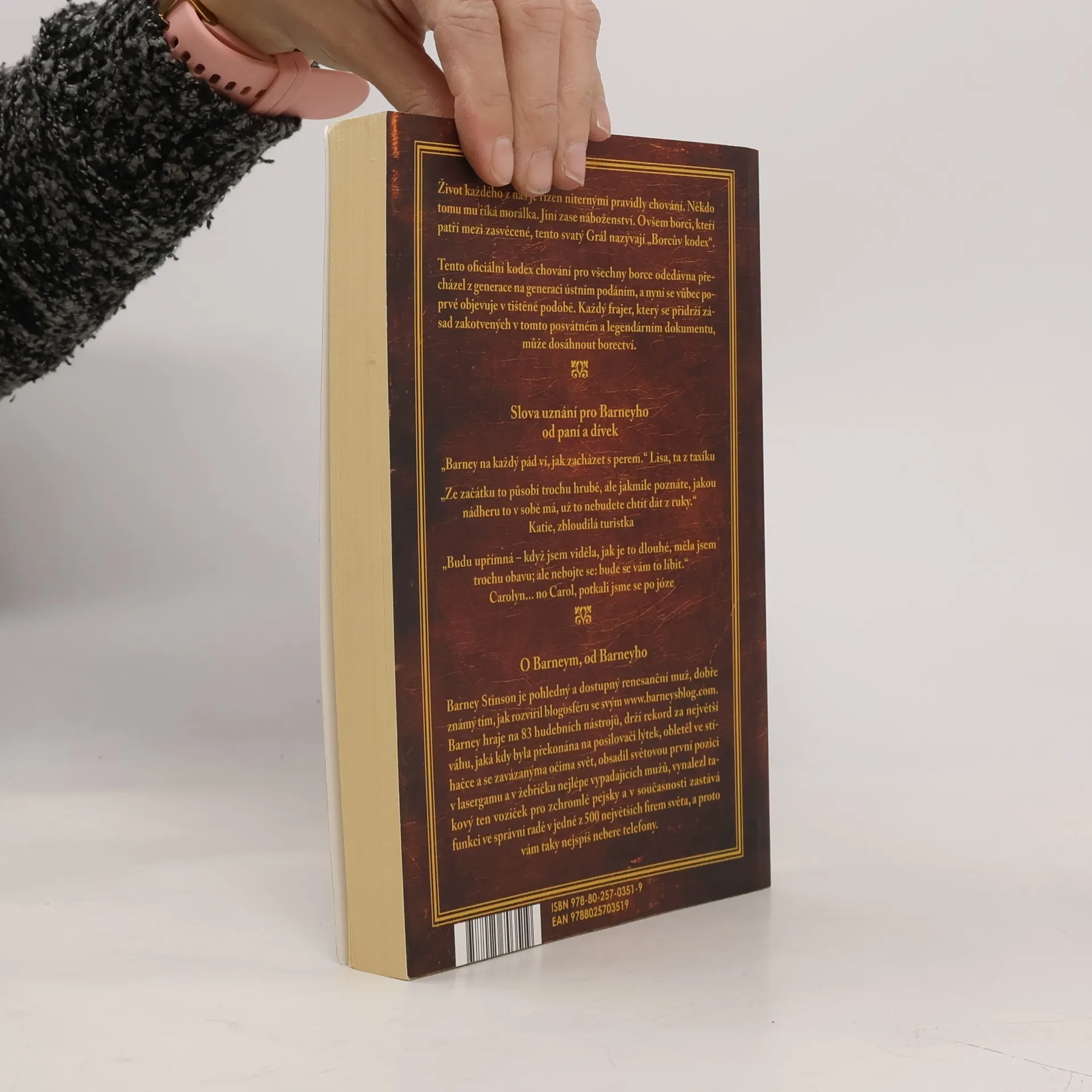 Barney Stinson je jednou z hlavních postav seriálu Jak jsem poznal vaši matku, a pro mnohé je nejdůležitější. Je renesanční osobností, mužem, který ví, jak užívat života, a chce ostatní naučit tomuto umění. K tomu slouží Borcův kodex, sto padesát stručných a jasných pouček, tabulky, grafy a rovnice, které popisují svět borců, kde na čelném místě stojí borec, za ním jeho parťáci a poté kočičky. Otázkou je, proč „borcův“? Překladatel se snaží co nejvíce přiblížit originálu a odchylky mají principiální důvody. Když Barney používá slova jako „bro“, „Nabroleon“ nebo „brofession“, české ekvivalenty jako „brácha“ nebo „parťák“ nefungují. Slovo borec nabízí lepší možnosti a vyjadřuje hodnocení a charakterizaci. Překladatel se také nesnaží napodobovat cizí překlad, ale vytváří vlastní verzi. Vít Penkala, překladatel, si skromně myslí, že je borec, a tím se snaží zachytit podstatu Barneyho osobnosti a jeho pohledu na svět.