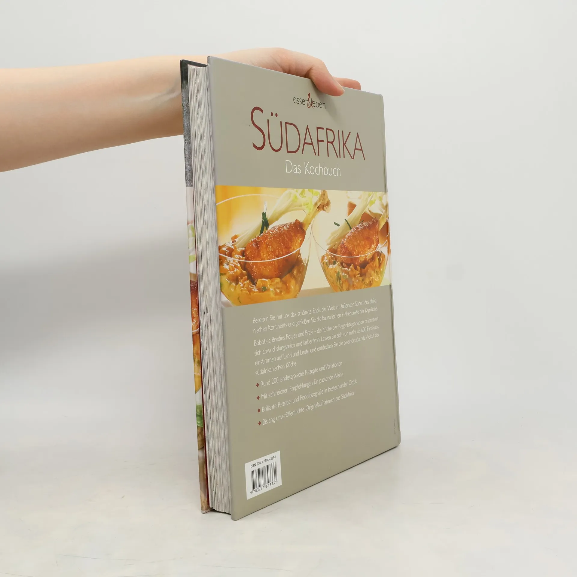 Genauso vielfältig und abwechslungsreich wie die südafrikanische Küche präsentiert sich der neue Band der hochwertigen essen & leben Reihe. In bewährter Ästhetik und mit einer bislang kaum gekannten Fülle an Fotos und Rezepte bereisen wir kulinarisch das schönste Land der Welt im äußersten Süden des afrikanischen Kontinents. Trendthema in der neuen Kochbuchgeneration. Sonderteil Weinland Südafrika.