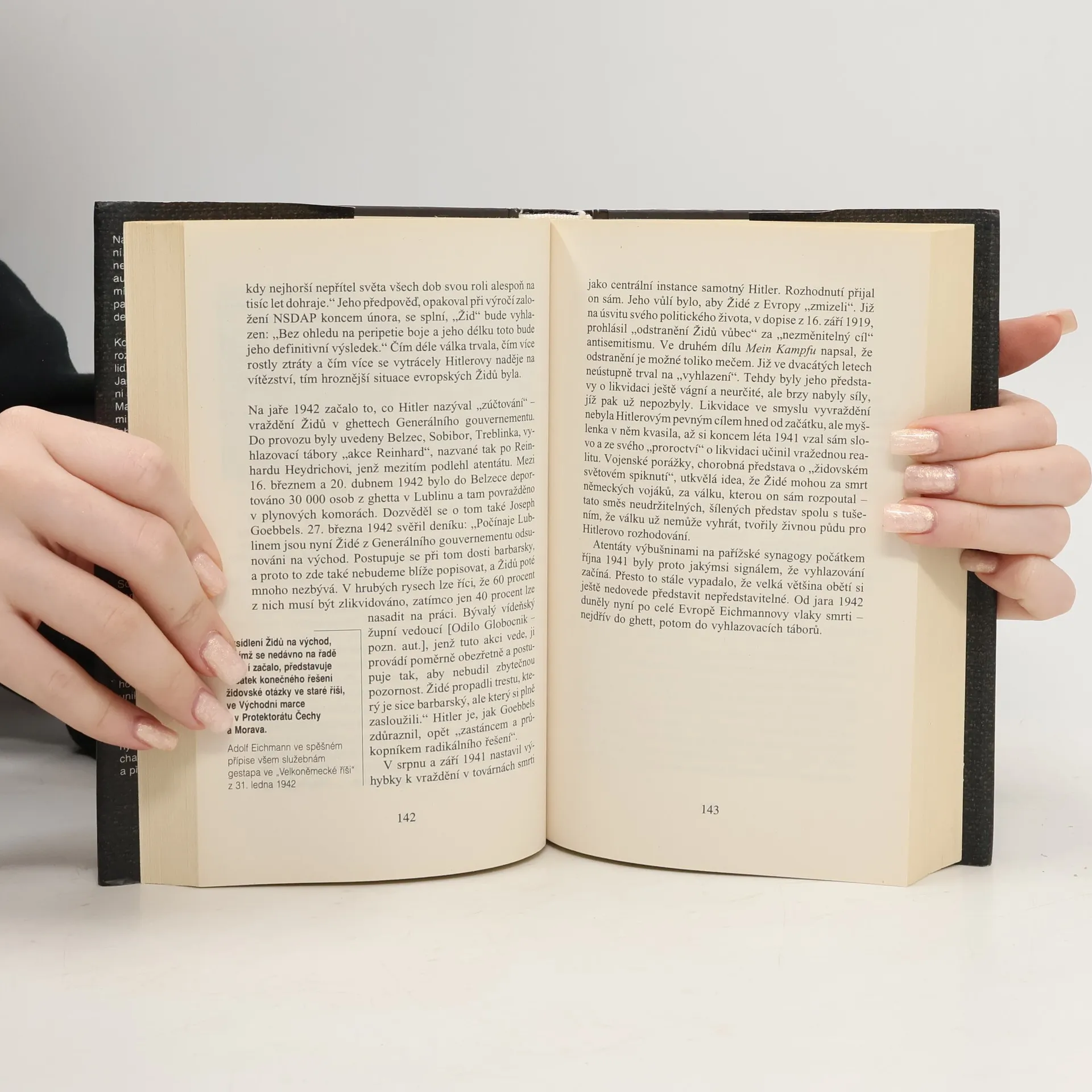 Historie pronásledování a fyzické likvidace Židů za 2. světové války. Literatura faktu. Tematicky členěný text popisuje proces "konečného řešení židovské otázky" od postupné společenské izolace a lidské degradace židovského obyvatelstva po jeho vyvražďování v koncentračních táborech. Plastický a velmi působivý obraz snad nejhorší kapitoly dějin 20. stol. čerpá z materiálů, dokumentů a svědectví, která nashromáždili dokumentaristé pro stejnojmenný televizní seriál. Marginálie v textu obsahují autentické výpovědi pamětníků.