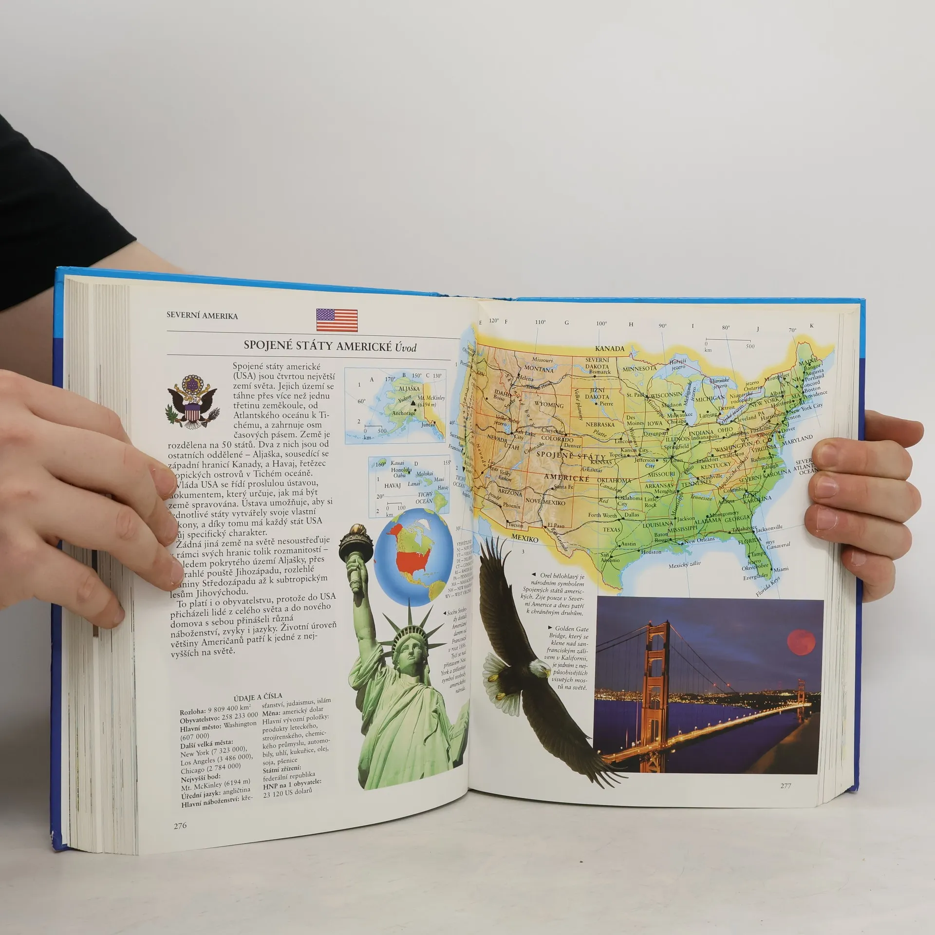 Na 640 stranách se čtenář dozví velké množství faktů o více než 180 nezávislých státech ze všechn kontinentů, ale především získá konkrétní představu o současném uspořádání světa. Jednotlivé kontinenty jsou včetně fyzických a politických map. Jsou zde mapy se souřadnicovými sítěmi pro rychlou a snadnou orientaci. Je zde slovníček použitých výrazů a obsažný geografický rejstřík. Kníha obsahuje více než 2 500 nádherných ilustrací a přes 700 jedinečných fotografií.