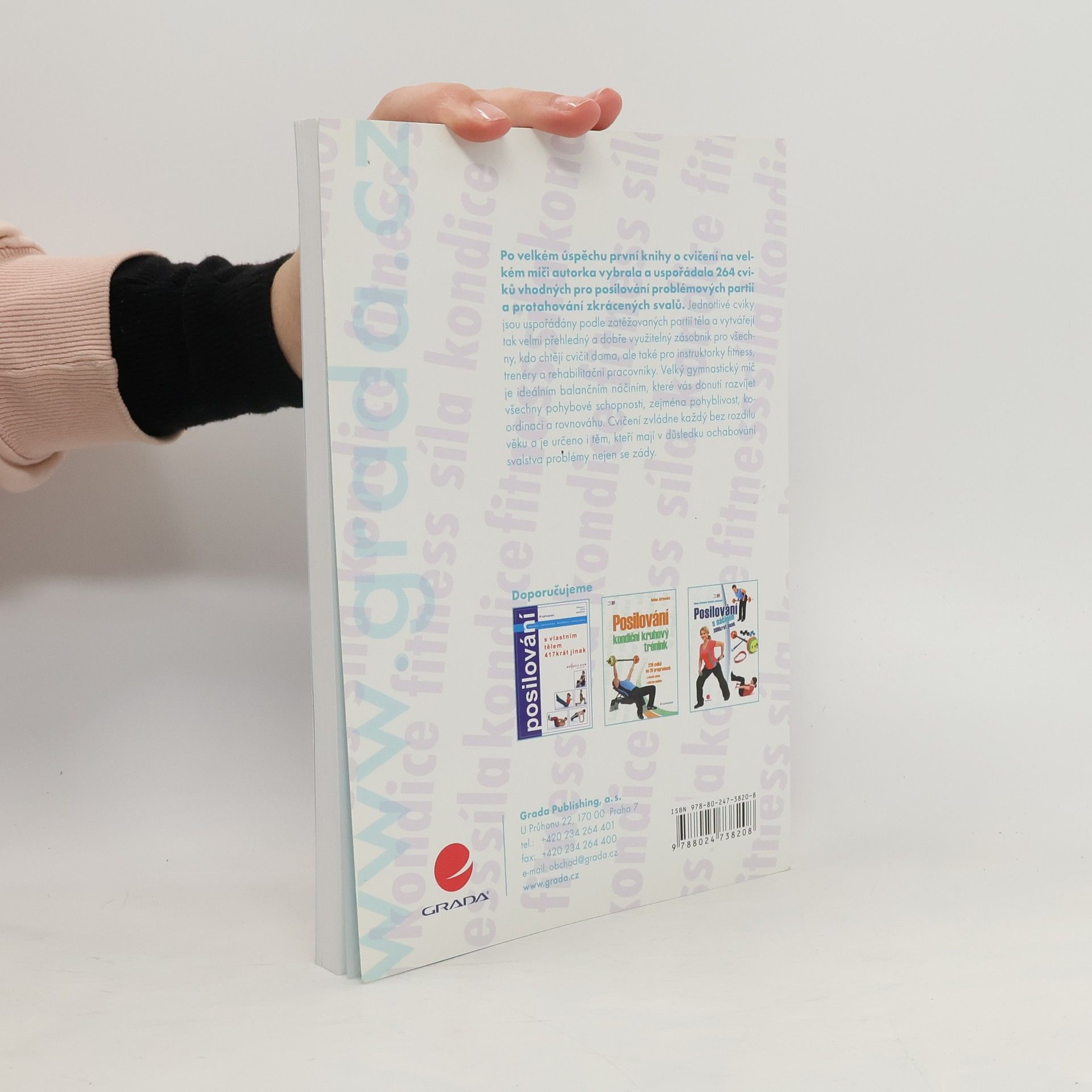 Po velkém úspěchu první knihy o cvičení na velkém míči autorka vybrala a uspořádala 264 cviků vhodných pro posilování problémových partií a protahování zkrácených svalů. Jednotlivé cviky jsou uspořádány podle zatěžovaných partií těla a vytvářejí tak velmi přehledný a dobře využitelný zásobník pro všechny, kdo chtějí cvičit doma, ale také pro instruktorky fitness, trenéry a rehabilitační pracovníky. Velký gymnastický míč je ideálním balančním náčiním, které vás donutí rozvíjet všechny pohybové schopnosti, zejména pohyblivost, koordinaci a rovnováhu. Cvičení zvládne každý bez rozdílu věku a je určeno i těm, kteří mají v důsledku ochabování svalstva problémy nejen se zády.