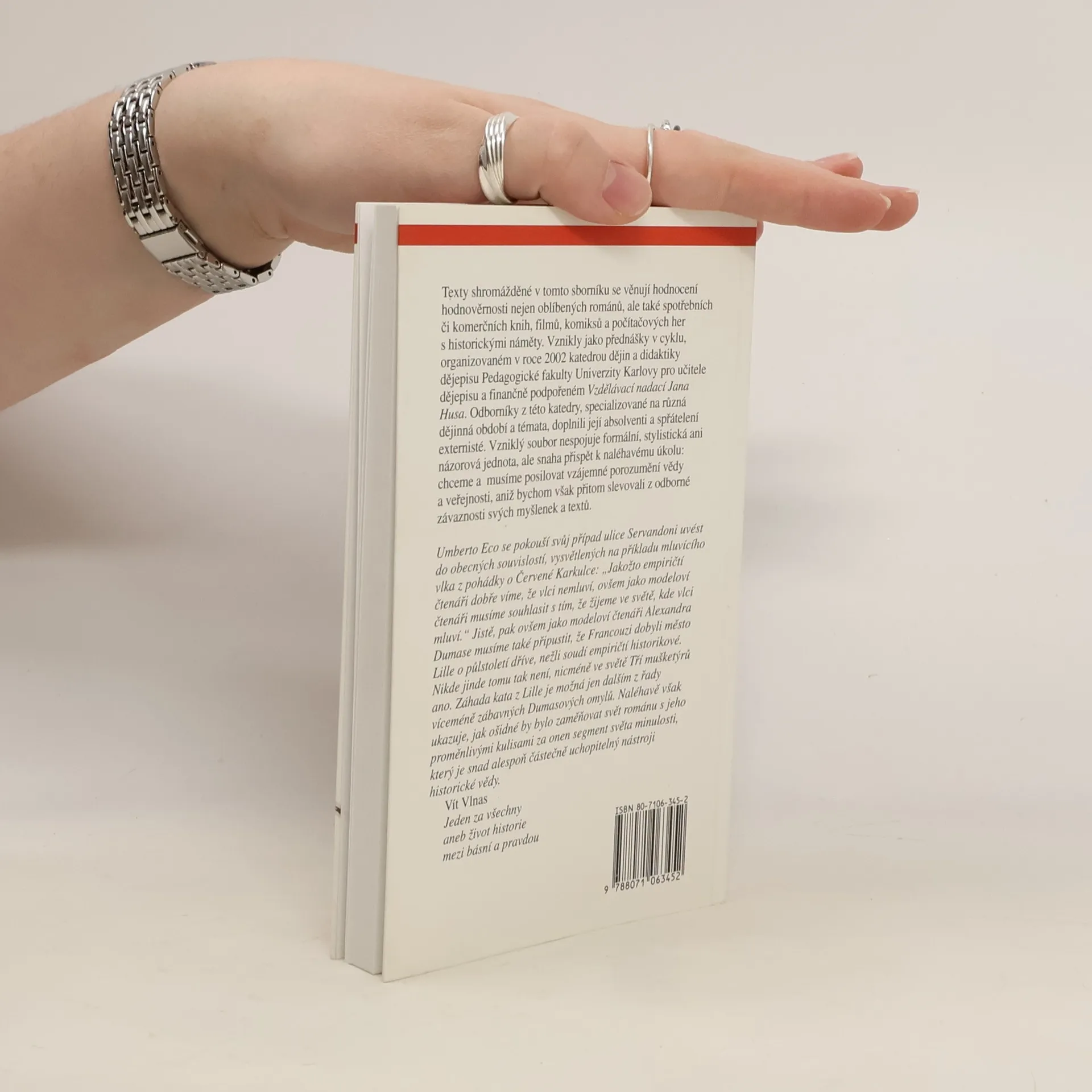 Podtitul: O historické věrohodnosti románů, filmů, komiksů a počítačových her Texty shromážděné v tomto sborníku se věnují hodnocení hodnověrnosti nejen oblíbených románů, ale také spotřebních či komerčních knih, filmů, komiksů a počítačových her s historickými náměty. Vznikly jako přednášky v cyklu, organizovaném v roce 2002 katedrou dějin a didaktiky dějepisu a finančně podpořeném Vzdělávací nadací Jana Husa. Odborníky z této katedry, specializované na různá dějinná období a témata, doplnili její absolventi a sprátelení externisté.