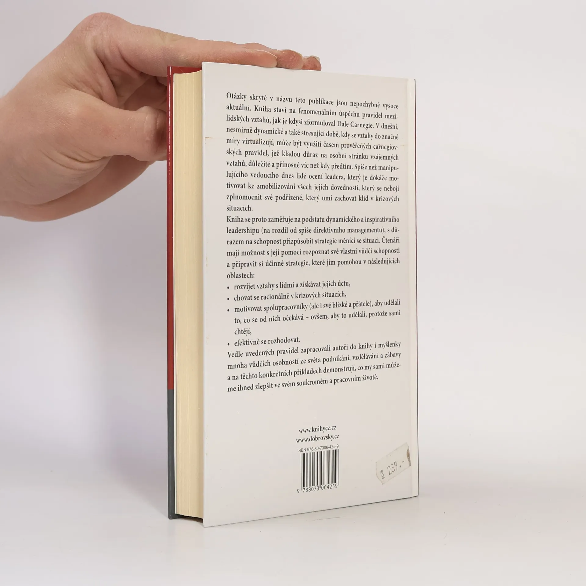 Kniha Jak dovést sebe i druhé k vrcholným výkonům – Čím vyniká vůdčí osobnost vznikla na základě mimořádně úspěšných pravidel, která již před desítkami let zformuloval „guru“ z oblasti mezilidských vztahů, legendární spisovatel a myslitel Dale Carnegie. Odkrývá tajemství dynamického a inspirativního leadershipu, který je dnes doslova imperativem pro manažery ve všech oblastech podnikání. Na základě aplikace carnegiovských pravidel se čtenáři dozví, jak mohou budovat vztahy s lidmi na pracovišti a jak si získají jejich respekt, naučí se správně reagovat na krizové situace a budou umět dělat i správná rozhodnutí ve správnou chvíli. Tento titul se tak právem řadí vedle nesmrtelného bestselleru Dale Carnegieho Jak získávat přátele a působit na lidi.