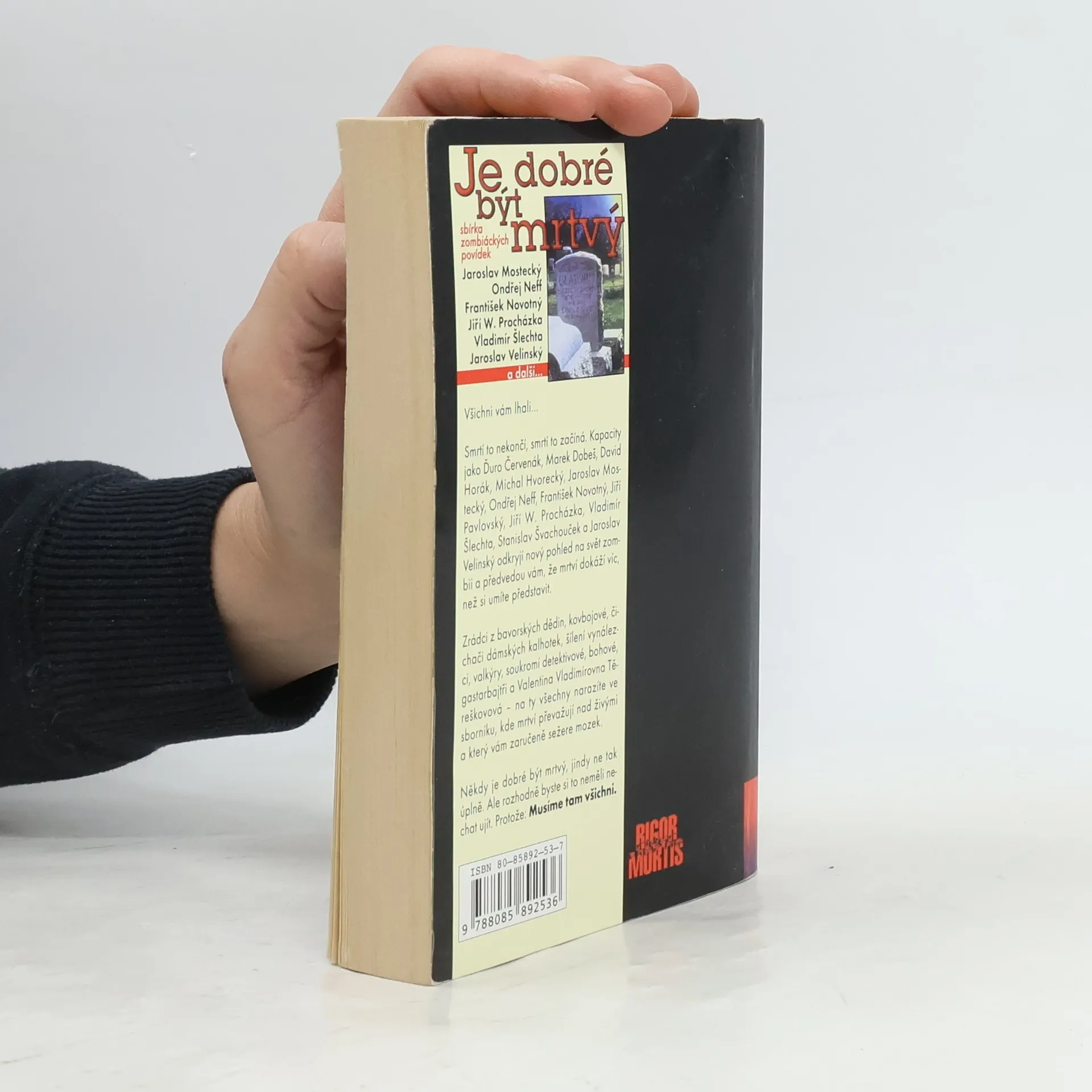 Všichni vám lhali… Smrtí to nekončí, smrtí to začíná. Kapacity jako Ďuro Červenák, Marek Dobeš, David Horák, Michal Hvorecký, Jaroslav Mostecký, Ondřej Neff, František Novotný, Jiří Pavlovský, Jiří W. Procházka, Vladimír Šlechta, Stanislav Švachouček a Jaroslav Velinský odkryjí nový pohled na svět zombii a předvedou nám, že mrtví dokáží víc, než si umíte představit. Zrádci z bavorských dějin, kovbojové, čichači dámských kalhotek, šílení vynálezci, valkýry, soukromí detektivové, bohové, gastarbajtři a Valentina Vladimírovna Těreškovová – na ty všechny narazíte ve sborníku, kde mrtví převažují nad živými a který vám zaručeně sežere mozek. Někdy je dobré být mrtvý, jindy ne tak úplně. Ale rozhodně byste si to neměli nechat ujít. Protože – Musíme tam všichni.