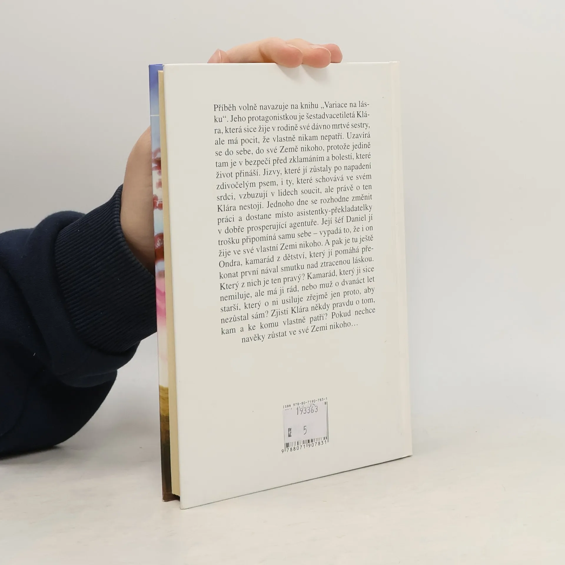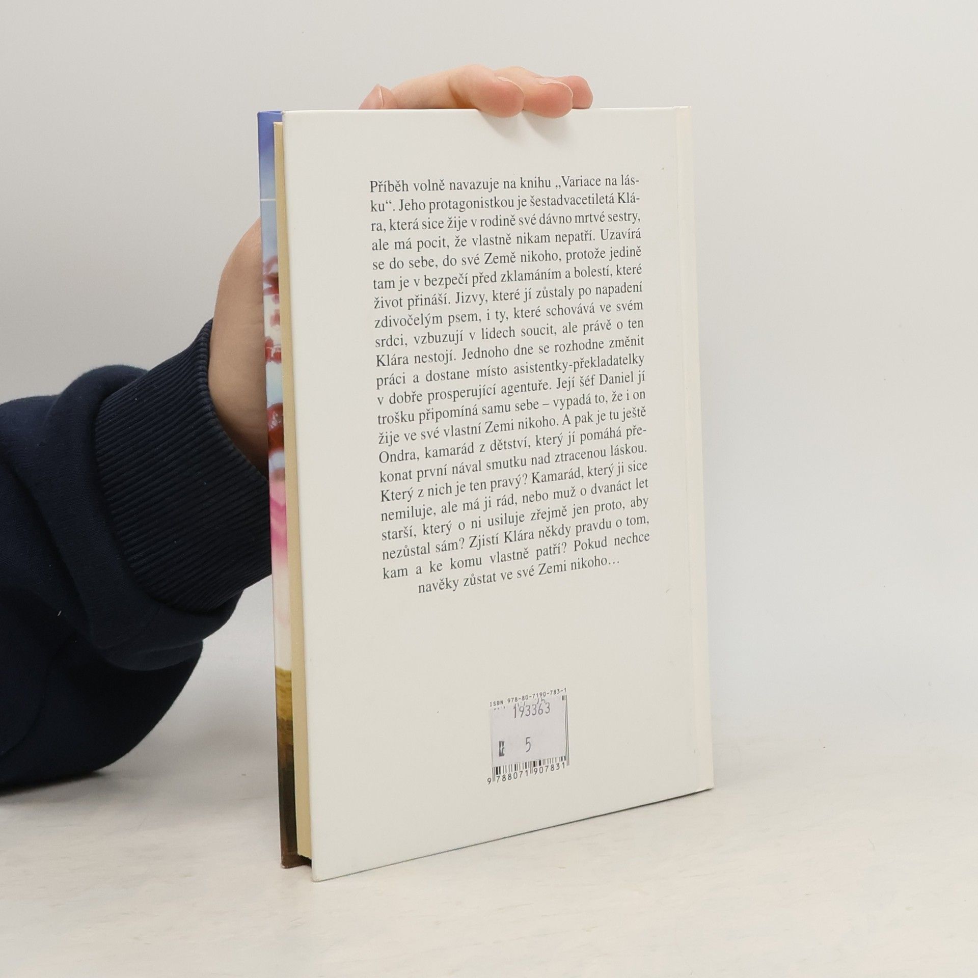 Volně navazuje na: Variace na lásku Jeho protagonistkou je šestadvacetiletá Klára, která sice žije v rodině své dávno mrtvé sestry, ale má pocit, že vlastně nikam nepatří. Uzavírá se do sebe, do své Země nikoho, protože jedině tam je v bezpečí před zklamáním a bolestí, které život přináší. Jizvy, které zůstaly po napadení zdivočelým psem, i ty, které schovává ve svém srdci, vzbuzují v lidech soucit, ale právě o ten Klára nestojí. Jednoho dne se rozhodne změnit práci a dostane místo asistentky-překladatelky v dobře prosperující agentuře. Její šéf Daniel jí trošku připomíná samu sebe-vypadá to, že i on žije ve své vlastní Zemi nikoho. A pak je tu ještě Ondra, kamarád z dětství, který jí pomáhá překonat první nával smutku nad ztracenou láskou. Který z nich je ten pravý? Kamarád, který ji sice nemiluje, ale má ji rád, nebo muž o dvanáct let starší, který o ni usiluje zřejmě jen proto, aby nezůstal sám? Zjistí Klára někdy pravdu o tom, kam a ke komu vlastně patří? Pokud ovšem nechce navěky zůstat ve své Zemi nikoho...