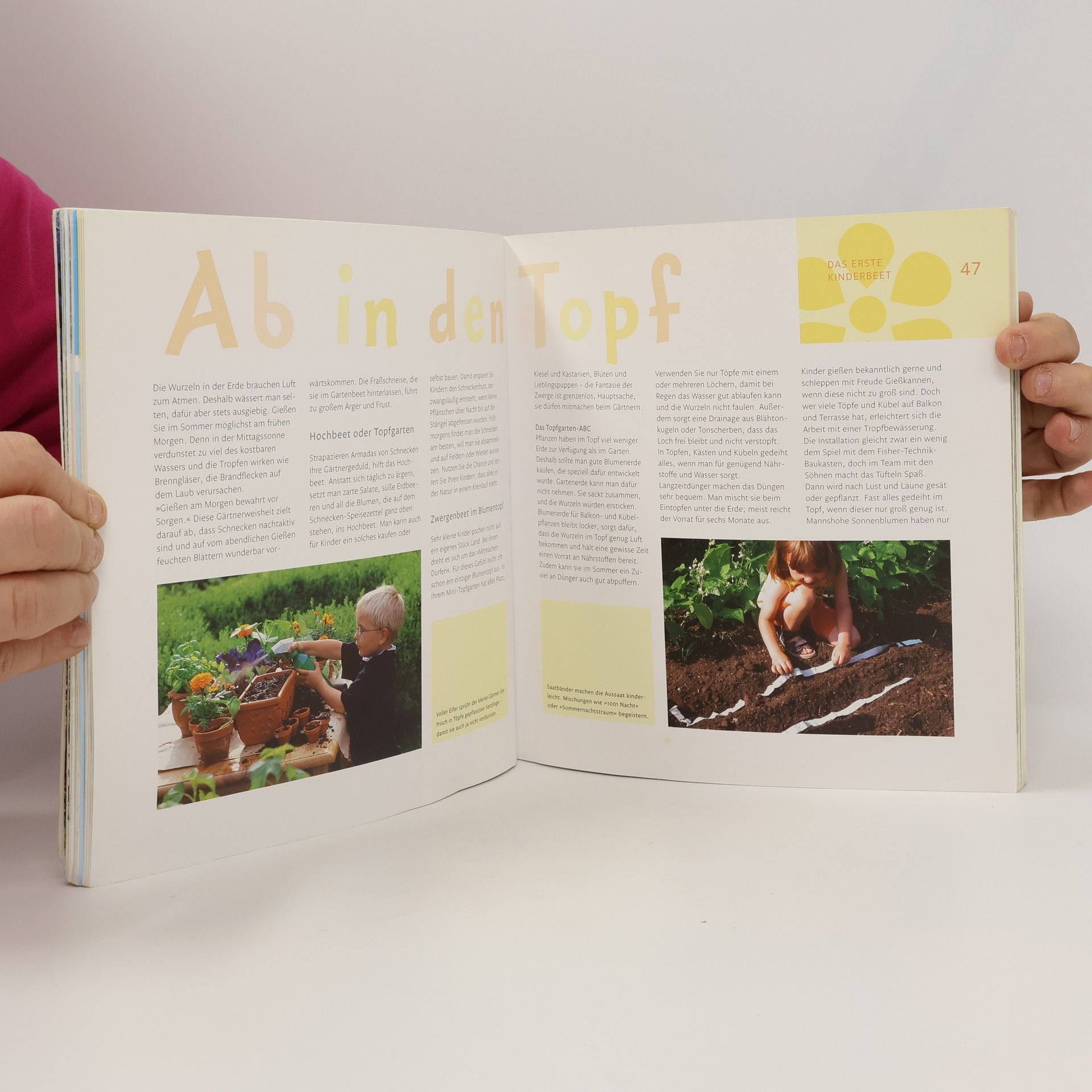 Aus der Gartentraum-Werkstatt: Baumhaus, Weidentunnel, Kletterbaum usw.; Kinderspass Gärtnern: pflanzen, pflegen und ernten; rund ums Jahr: spielen, basteln, feiern und toben; Natur und Tiere beobachten, Nisthilfen und Futterstationen bauen.