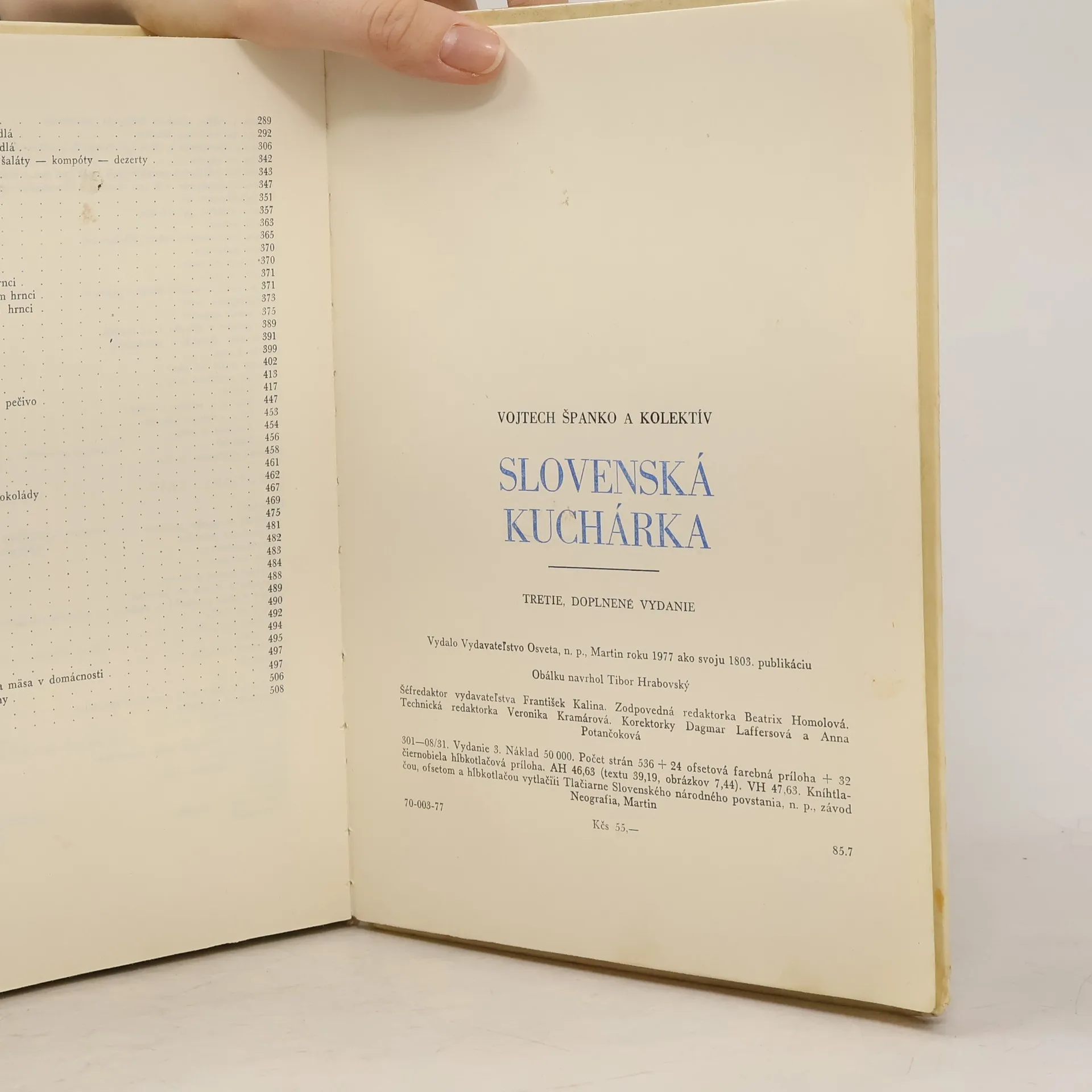 Autorský kolektív vychádza z bohatých tradícií našej gastronomie a ďalej ju rozvíja z hľadiska súčasných zásad roacionálnej výživy. Kuchárska kniha obsahuje množstvo receptov na všedný deň aj na sviatočnú príležitosť. Okrem predpisov na tradičné jedlá slovenskej kuchyne možno tu nájsť recepty na novšie špeciality.