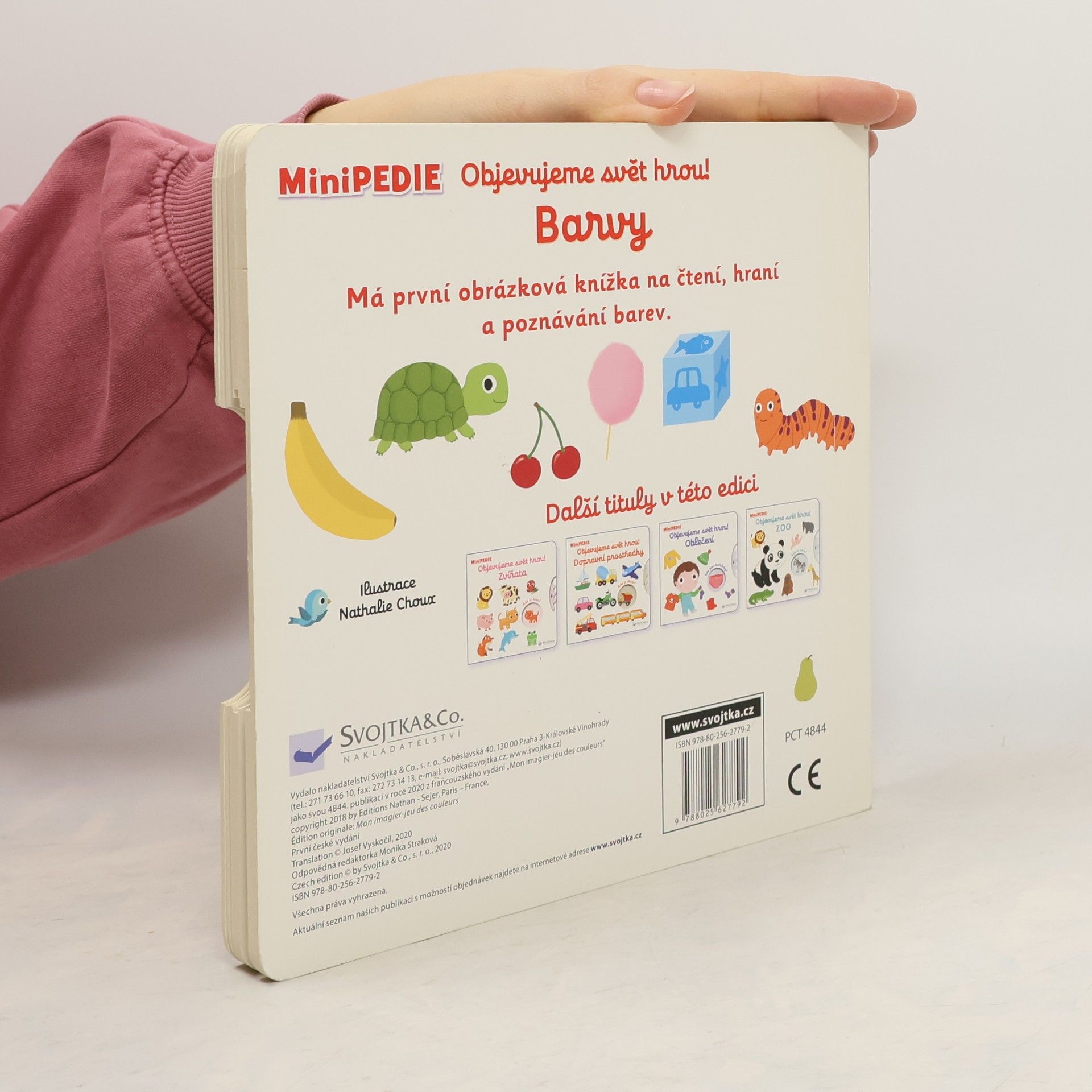 Víš, jakou barvu má beruška? Je velryba opravdu modrá? A co třeba malina? V této knížce naleznete mnoho krásných ilustrací, které jednoduchou formou ty nejmenší čtenáře seznámí se základními barvami a předměty v jejich okolí. Díky otáčivému kolečku je leporelo ještě zábavnější, a děti si tak velice snadno procvičí jemnou motoriku. Knížka s prvky Montessori. České vydání publikace nakladatelství Nathan.