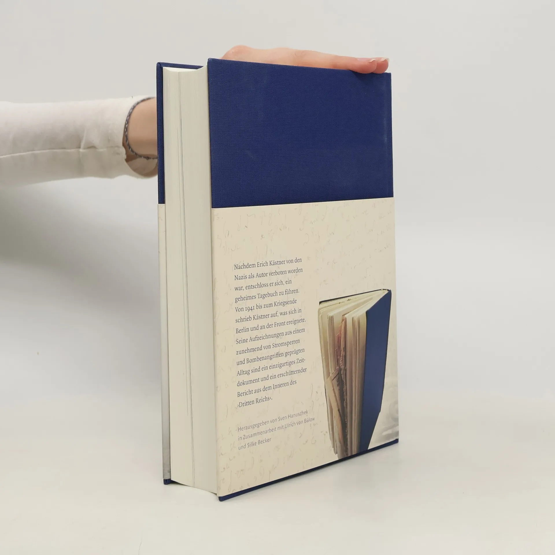 Nachdem Erich Kästner 1933 von den Nazis als Autor verboten worden war, entschloss er sich, ein geheimes Tagebuch zu führen. Dazu griff er auf ein blau eingebundenes, unbeschriftetes Buch zurück, das er zwischen den anderen viertausend Bänden seiner Bibliothek versteckte. Aus Sicherheitsgründen fertigte Kästner seine Aufzeichnungen außerdem stenografisch an. Von 1941 bis zum Kriegsende schrieb Erich Kästner auf, was sich an der Front und in Berlin ereignete, notierte Heeresberichte und Massenexekutionen ebenso wie die Kneipenwitze über Goebbels und Hitler, die schon bald nur noch hinter vorgehaltener Hand gemacht wurden. Er dokumentiert seinen zunehmend von Stromsperren und Bombenangriffen geprägten Alltag bis zur bedingungslosen Kapitulation im Mai 1945 und berichtet, was sich in den Monaten danach abspielte. Die jetzt vorliegende, von Sven Hanuschek zusammen mit Silke Becker und Ulrich von Bülow herausgegebene und umfangreich kommentierte Ausgabe umfasst neben Kästners Kriegstagebuch auch seine gesammelten Notizen für einen Roman über das »Dritte Reich«, ein umfangreiches Vorwort sowie zahlreiche Zeitungsartikel, die Erich Kästner im Blauen Buch aufbewahrte.