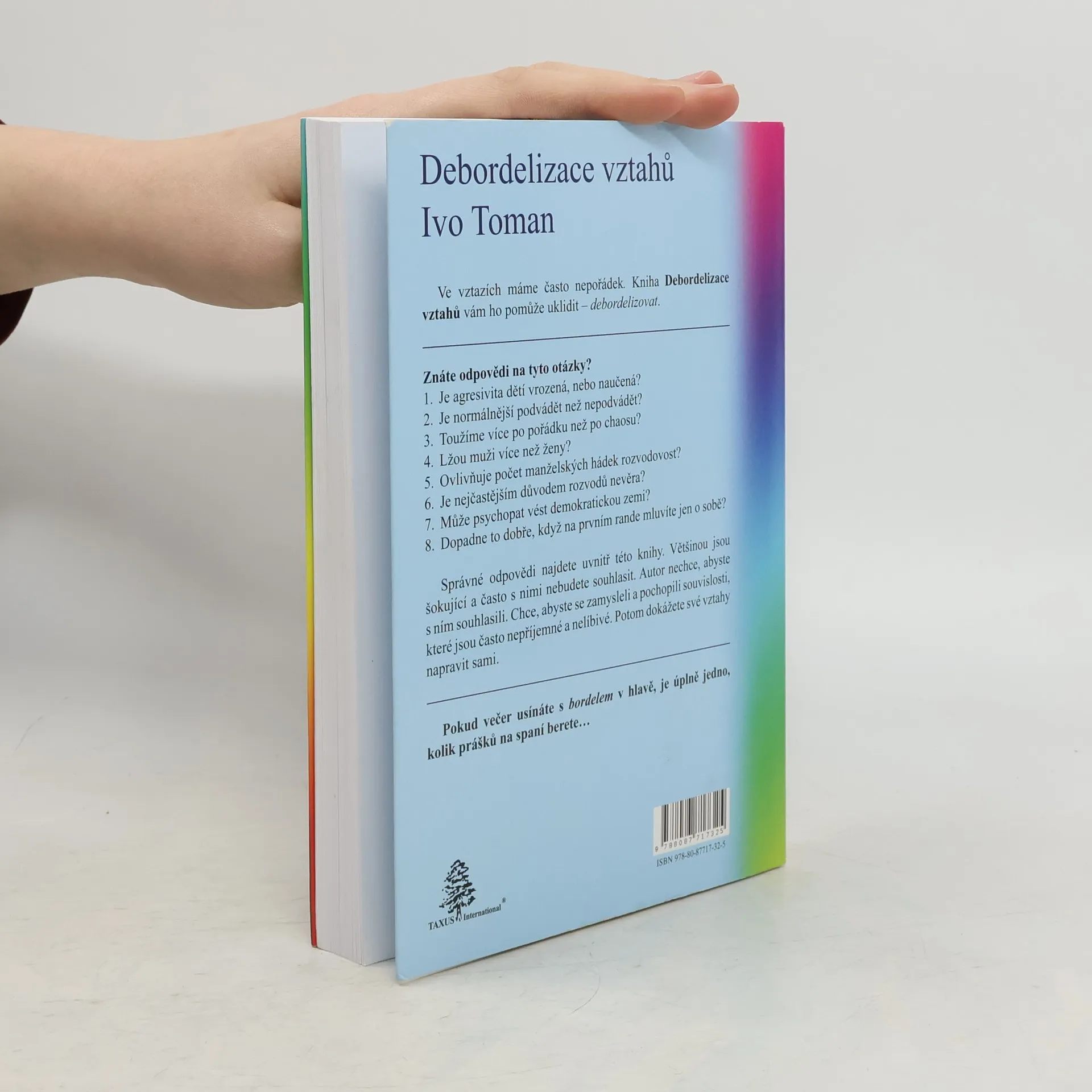 Ve vztazích často panuje chaos. Publikace vám pomůže tento nepořádek uklidit a debordelizovat. Znáte odpovědi na otázky jako: Je agresivita dětí vrozená nebo naučená? Je normálnější podvádět než být věrný? Toužíme více po pořádku než po chaosu? Lžou muži více než ženy? Ovlivňuje počet manželských hádek rozvodovost? Je nevěra nejčastějším důvodem rozvodů? Může psychopat vést demokratickou zemi? A co se stane, když na prvním rande mluvíte jen o sobě? Odpovědi na tyto otázky najdete uvnitř knihy, většinou šokující a často s nimi nebudete souhlasit. Autor nechce, abyste s ním souhlasili; chce, abyste se zamysleli nad nepříjemnými souvislostmi a opravili své vztahy. Pokud usínáte s chaosem v hlavě, nezáleží na tom, kolik prášků na spaní berete. Recenze doktora Radima Uzla naznačuje, že publikace je průvodcem v partnerských vztazích a radí, jak řešit krizové situace. Autor se s humorem dívá do ložnic a obývacích pokojů a zkoumá příčiny konfliktů. Jeho odborné znalosti jsou podloženy množstvím citací a pramenů. Kniha nabízí návod k utřídění postojů a dovedností, po jejím přečtení budete mít jasno a pořádek ve svých myšlenkách. Je to čtení, které by si měl přečíst snad každý!