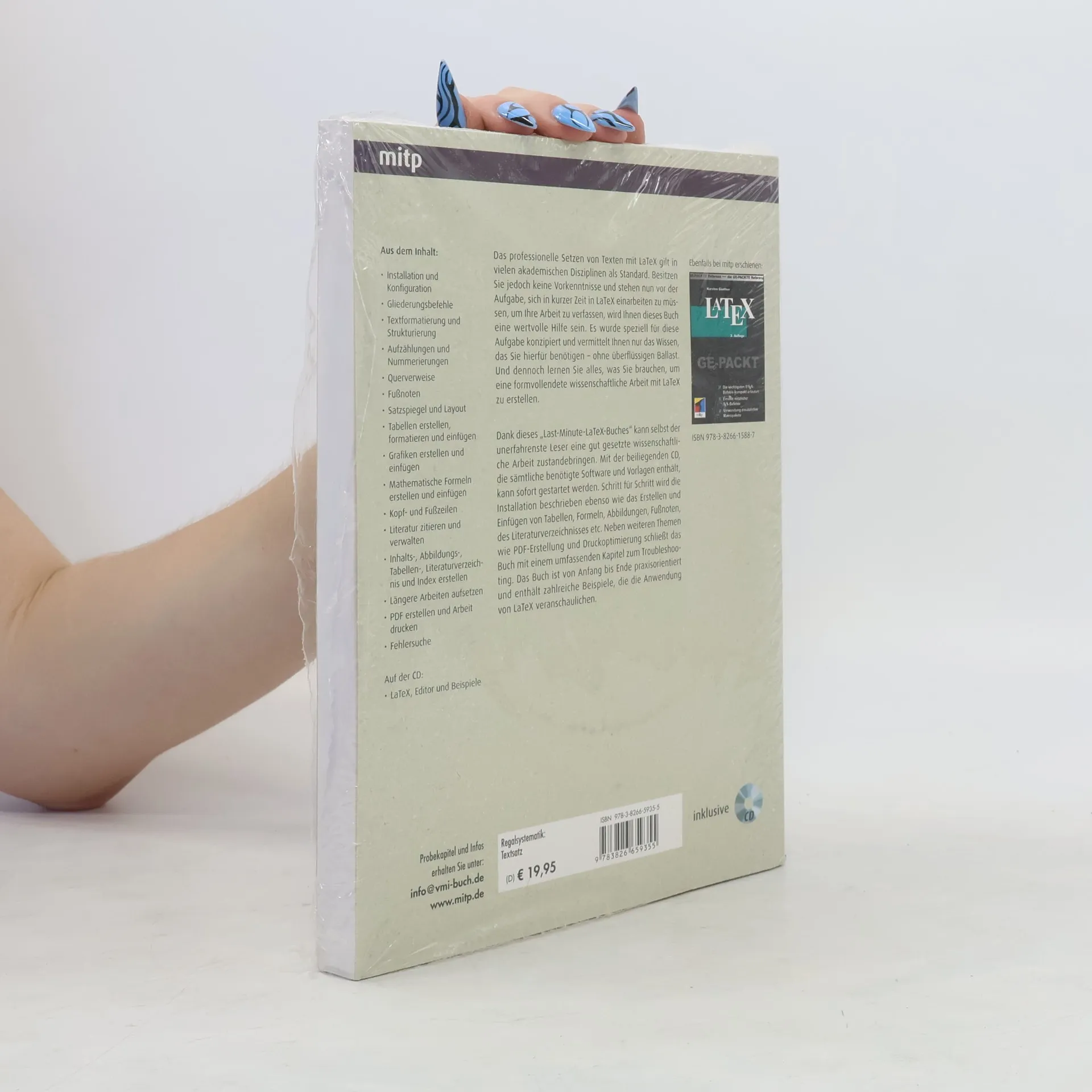 Diese Einführung richtet sich speziell an Studenten, die in Kürze eine wissenschaftliche Arbeit in LaTeX verfassen sollen. Durch die leicht verständliche Beschreibung aller relevanten LaTeX-Elemente werden auch Leser ohne Vorkenntnisse schnell in die Lage versetzt, ihre Arbeit professionell zu setzen. Auf der beiliegenden CD finden sich eine LaTeX-Distribution, sofort einsetzbare Vorlagen u. v. m.