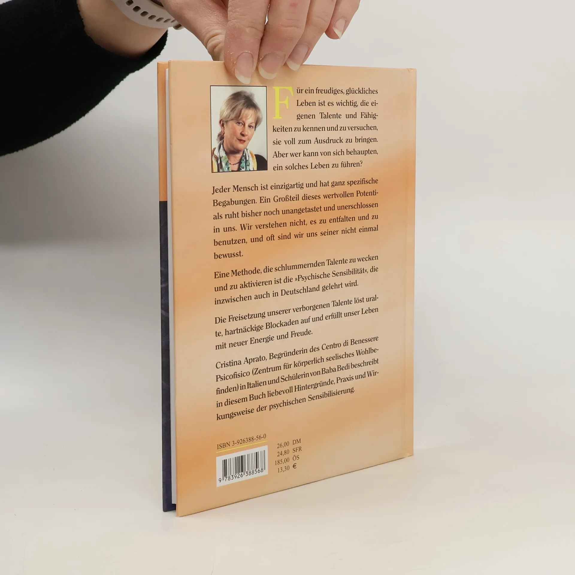 Für ein freudiges, glückliches Leben ist es wichtig, die eigenen Talente und Fähigkeiten zu kennen und zu versuchen, sie voll zum Ausdruck zu bringen. Aber wer kann von sich behaupten, ein solches Leben zu führen? Jeder Mensch ist einzigartig und hat ganz spezifische Begabungen. Ein Großteil dieses wertvollen Potentials ruht bisher noch unangetastet und unerschlossen in uns. Wir verstehen nicht, es zu entfalten und zu benutzen, und oft sind wir uns seiner nicht einmal bewusst. Eine Methode, die schlummernden Talente zu wecken und zu aktivieren ist die „Psychische Sensibilität“, die inzwischen auch in Deutschland gelehrt wird. Die Freisetzung unserer verborgenen Talente löst uralte, hartnäckige Blockaden auf und erfüllt unser Leben mit neuer Energie und Freude. Cristina Aprato, Begründerin des Centro di Benessere Psicofisico (Zentrum für körperlich seelisches Wohlbefinden) in Italien und Schülerin von Baba Bedi beschreibt in diesem Buch liebevoll Hintergründe, Praxis und Wirkungsweise der psychischen Sensibilisierung.