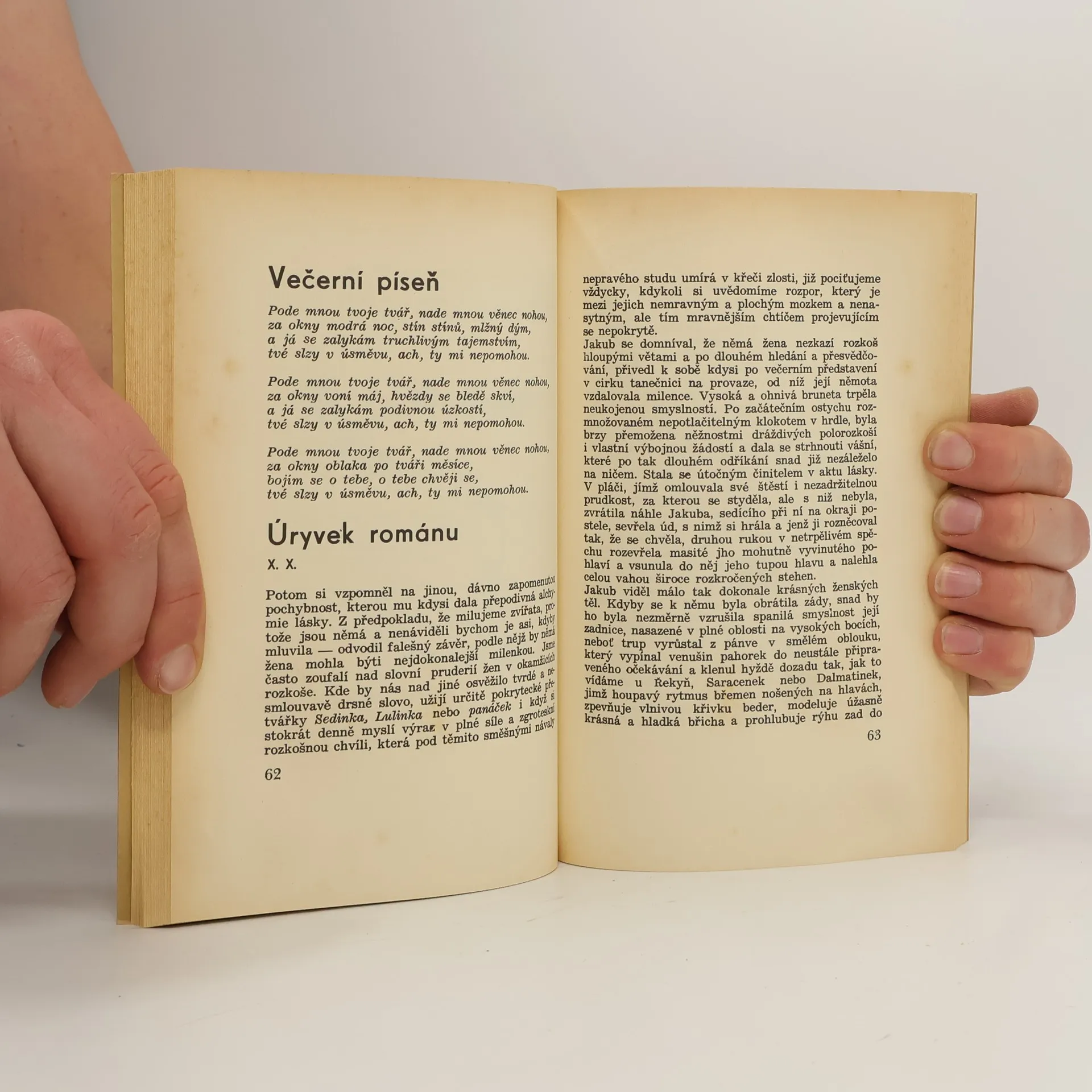 Reprint původního vydání z r. 1932. Povídky, kresby a poezie eroticky laděná. Soukromý tisk vydaný původně J. Štyrským pro své přátele